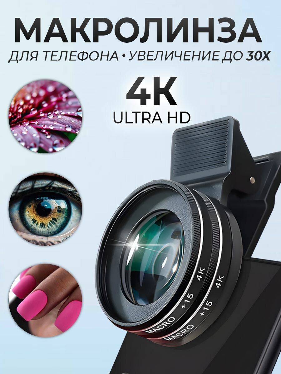 Макролинза для телефона, 30х 4К профессиональная макро объектив для мобильного телефона интересное: