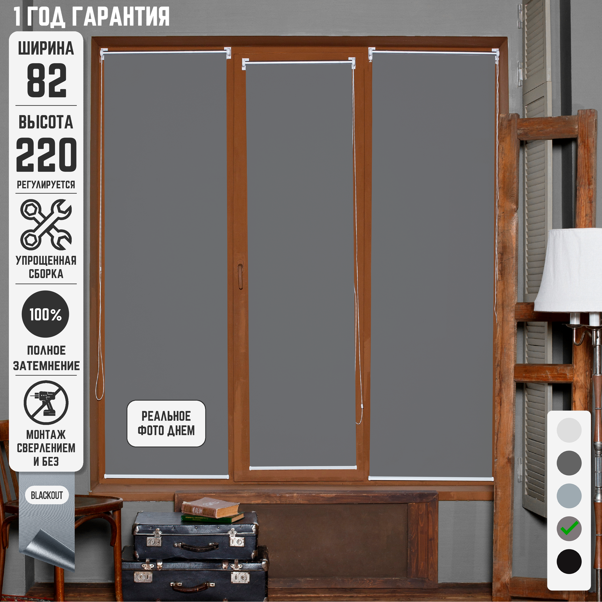 Купить Рулонные шторы темно-серый блэкаут на окна без сверления 82 на 220