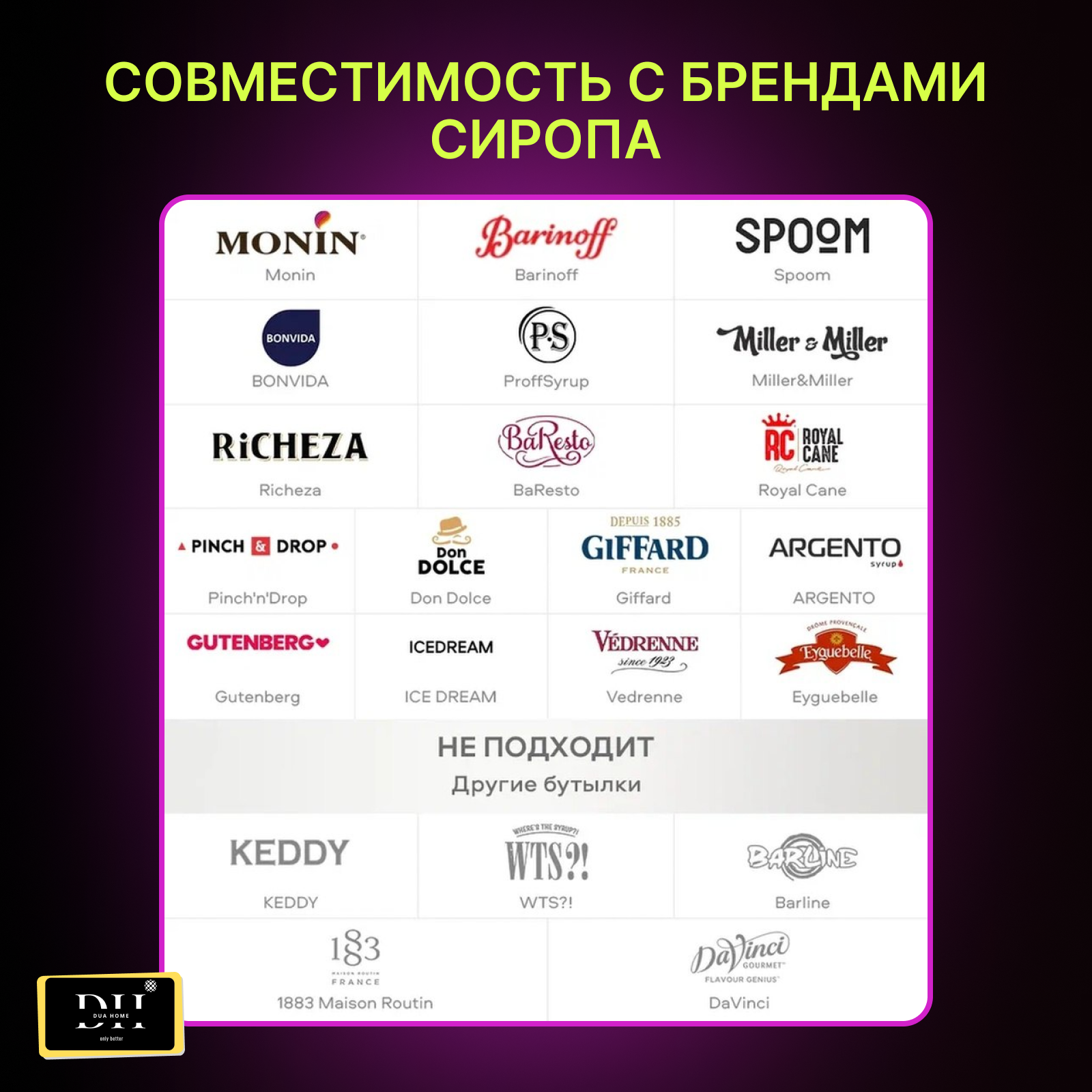 | Подробная комплектация | Помпа - дозатор для сиропа - 1 шт, Трубочка для дозатора - 2 шт. |
