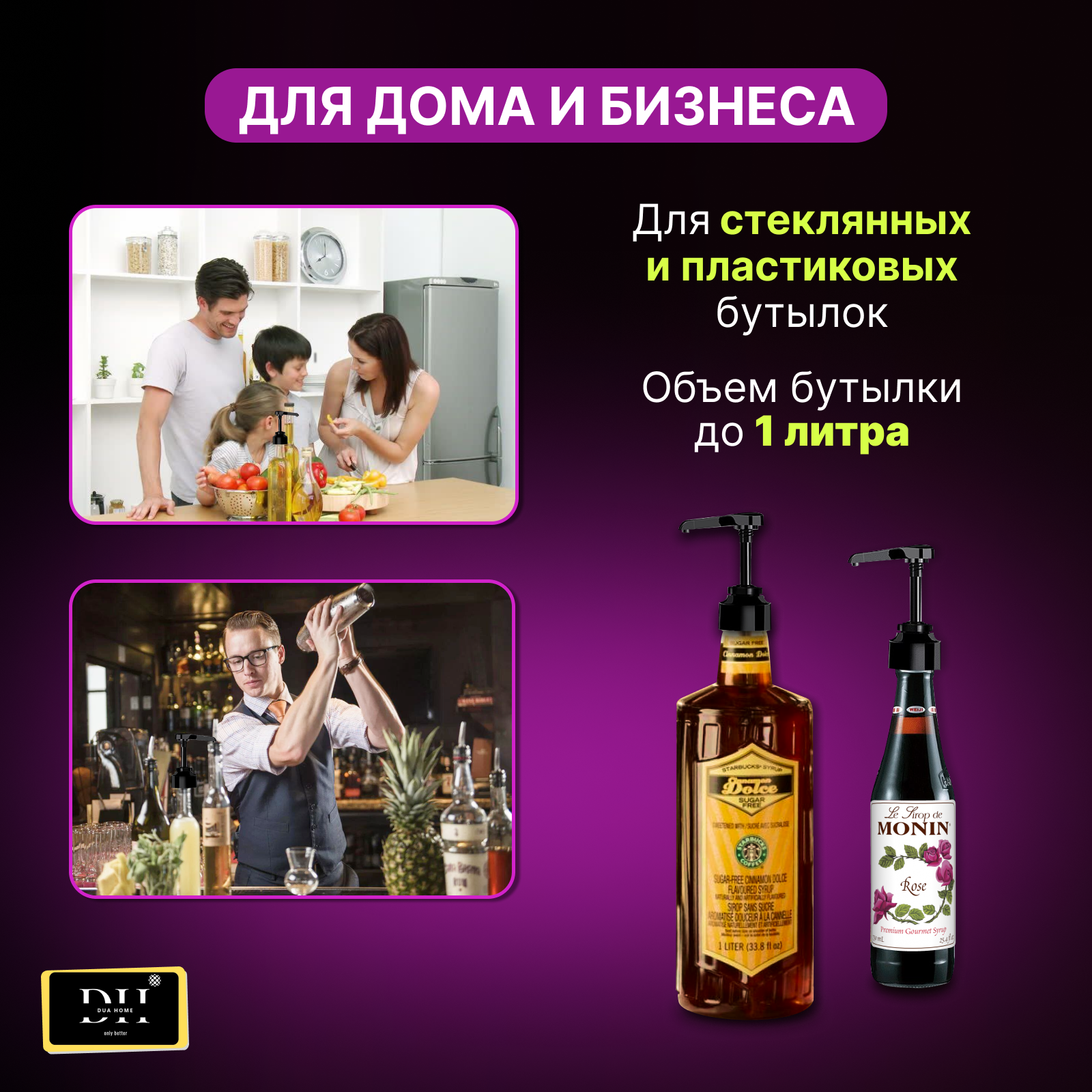 DUA HOME Дозатор для сиропа помпа для бутылок 1 л насадка на бутылку с маслом кухонный диспенсер для напитков / черный / комплект 2 шт.
