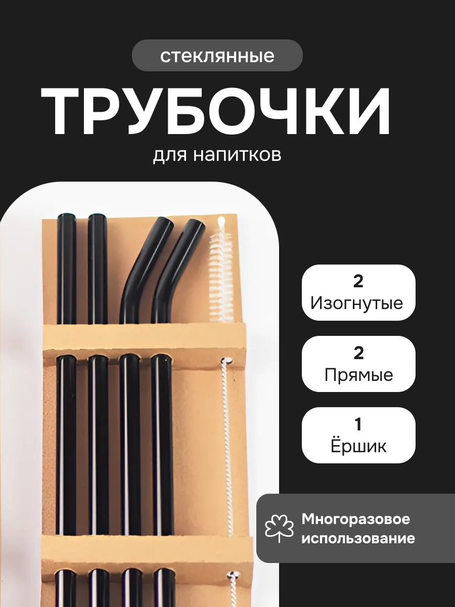 Многоразовые стеклянные чёрные трубочки для напитков и коктейлей интересное:
