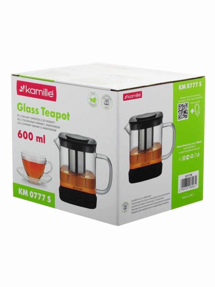 Стеклянный заварочный чайник 600 мл. Kamille KM 0778S со съемным ситечком (600 мл. / прозрачный)