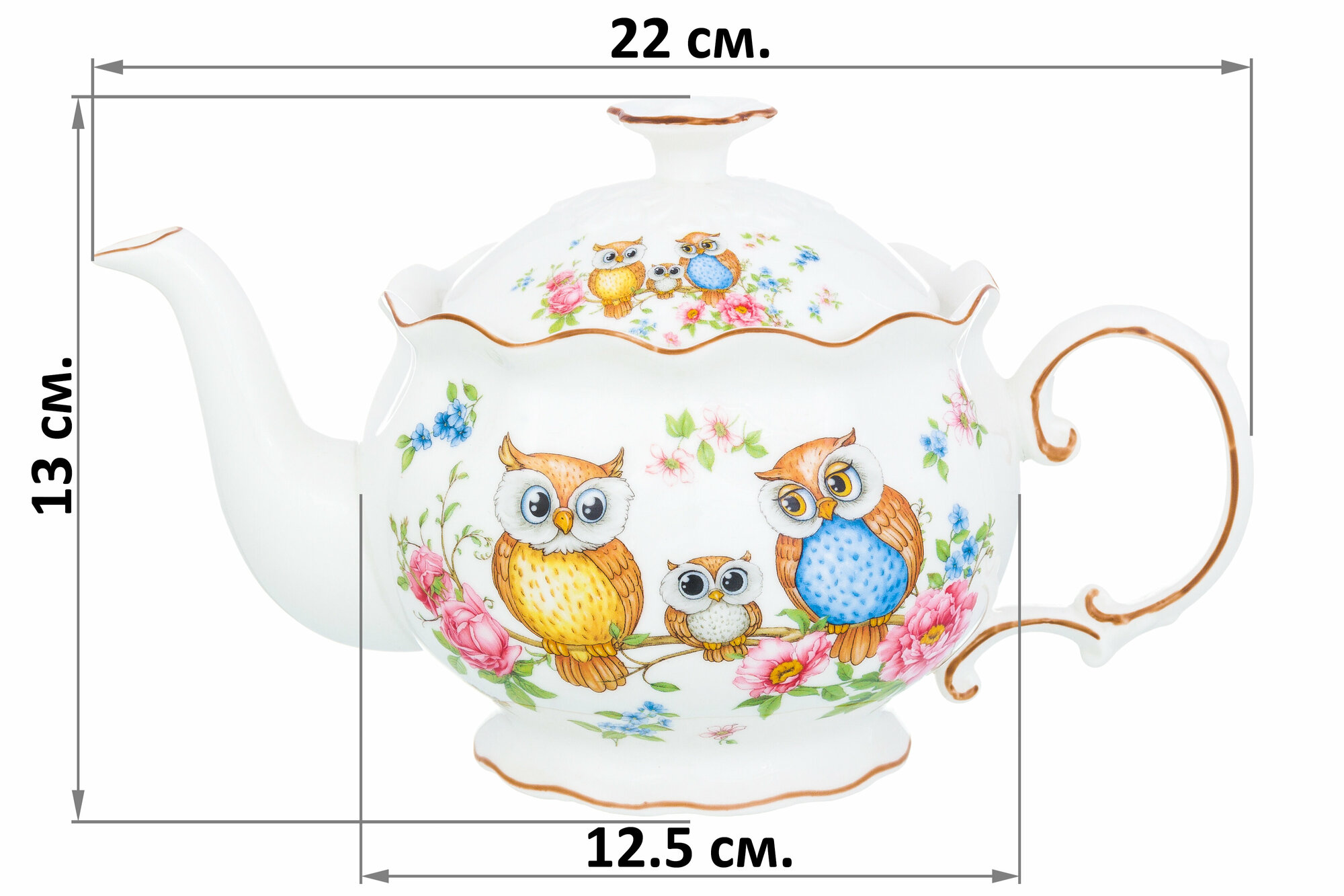 Чайник заварочный 700 мл Elan Gallery Совушки, 22х12,5х13 см, фарфор