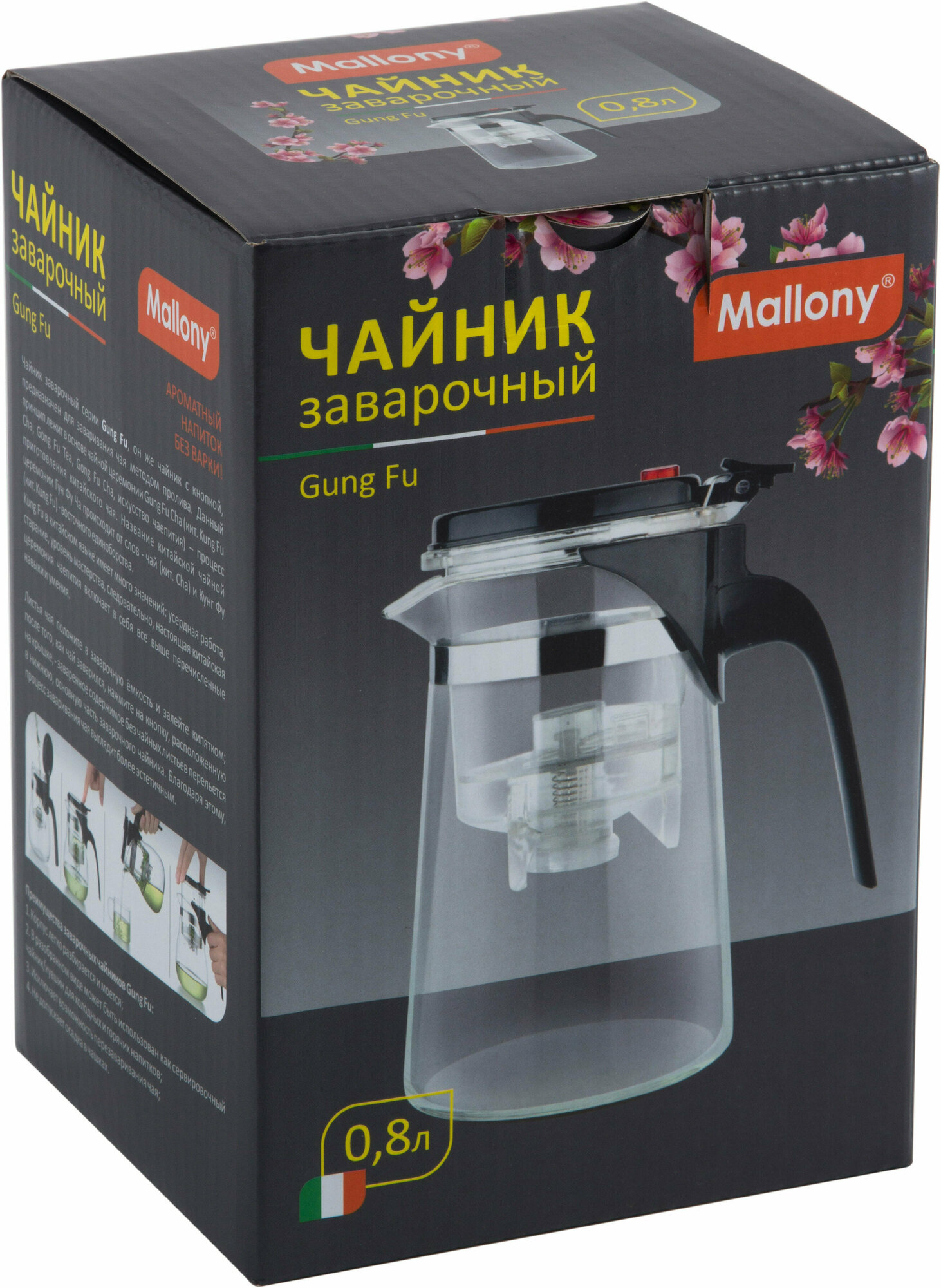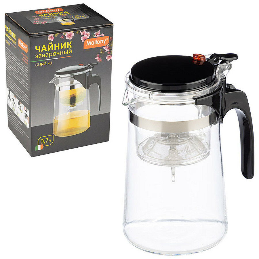Чайник заварочный с кнопкой MALLONY Gung Fu 700мл, стекло, нержавеющая сталь, полипропилен (004533) интересное: