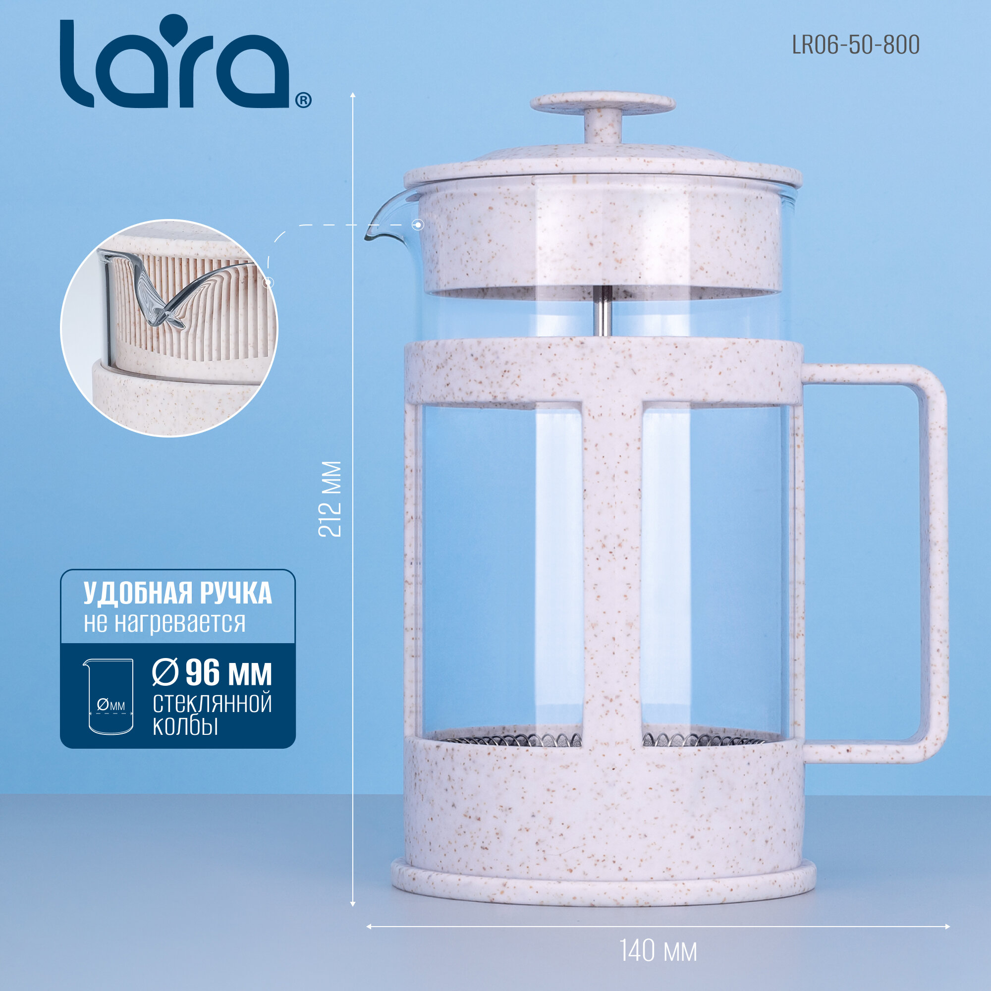 Френч-пресс 0,8 л LARA LR06-50-800, бежевый, стекло/пластик