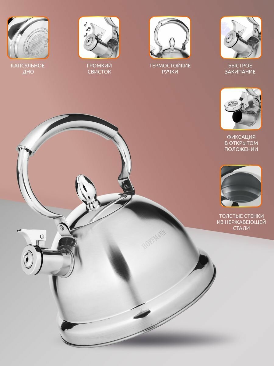 Hoffmann Чайник со свистком НМ 55153 2.8 л, серебристый интересное: