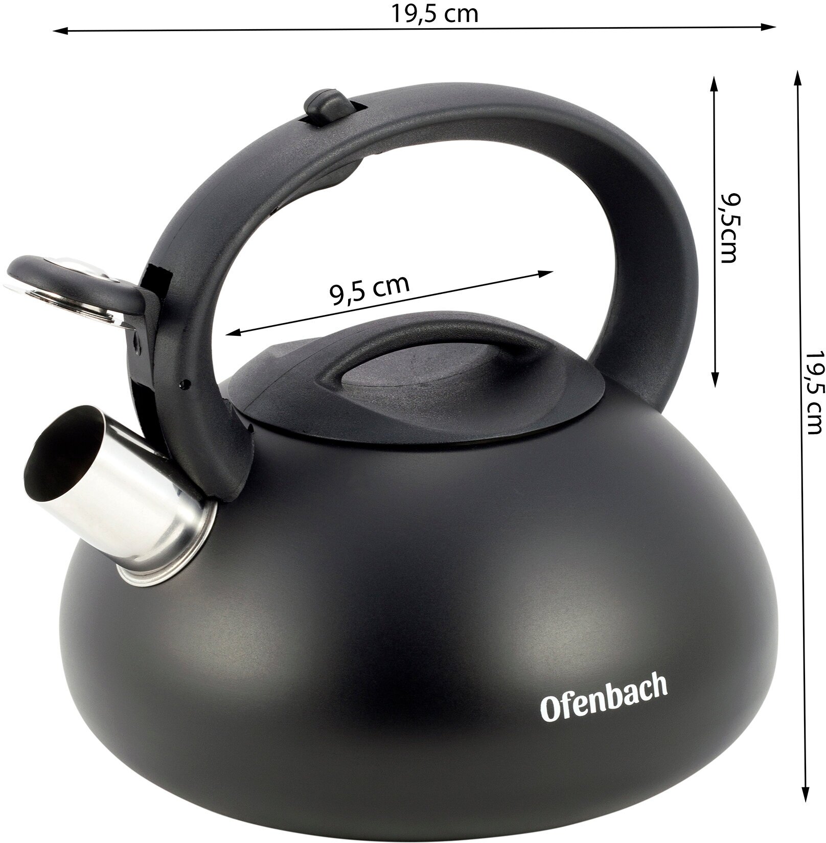 Чайник 2,5 л. из нержавеющей стали со свистком Ofenbach NB-100302 и ручкой из нейлона (черный) интересное:
