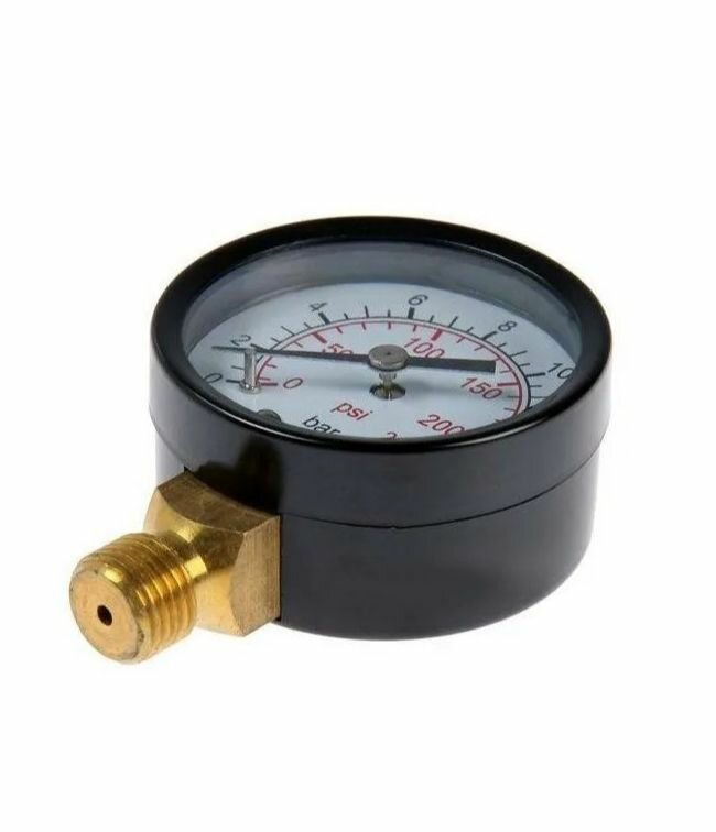 Манометр ARIDE 53 мм, 2х15 бар (220 PSI), 2", черный, Арайд, М 53 2 15