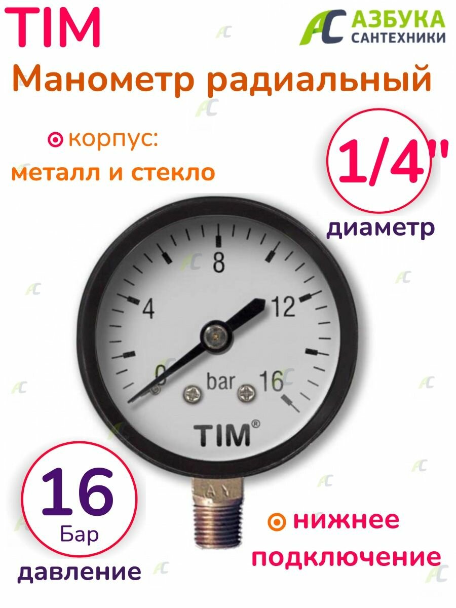 Манометр радиального подключения 1/4" - 16 бар TIM арт. Y-50-16 интересное: