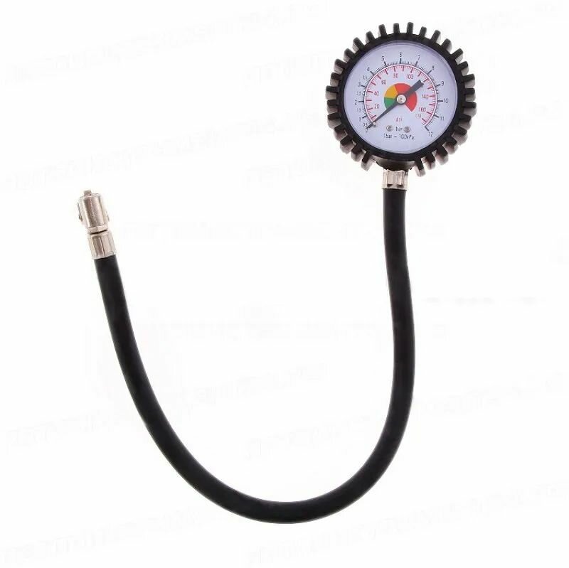 Манометр АвтоDело с клапаном спуска и шлангом с быстросъёмной насадкой 0.50-12.16 bar. (42312)