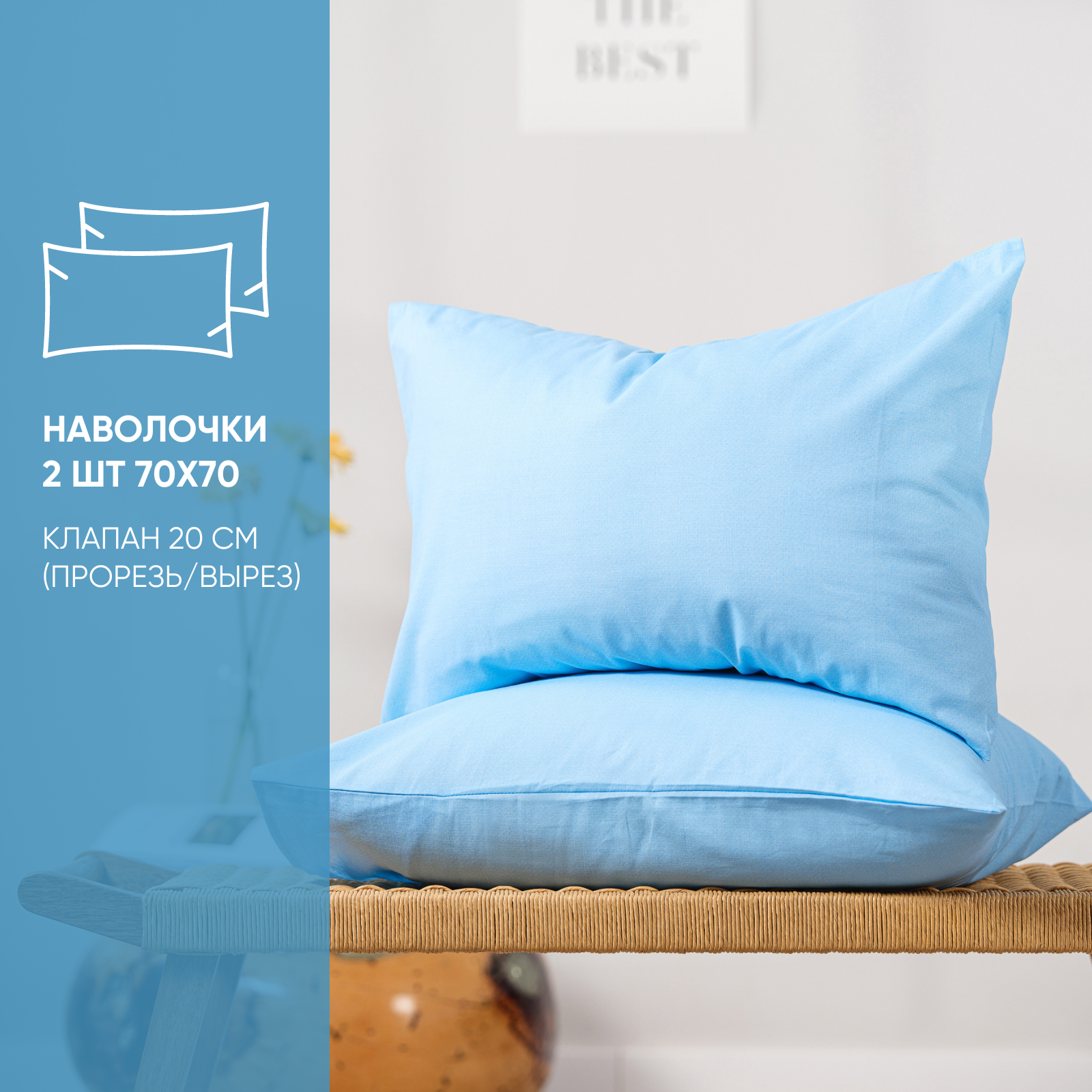 Постельное белье Евро, Ночь Нежна, Пляж, 2 наволочки 70х70, ткань бязь, 100% хлопок