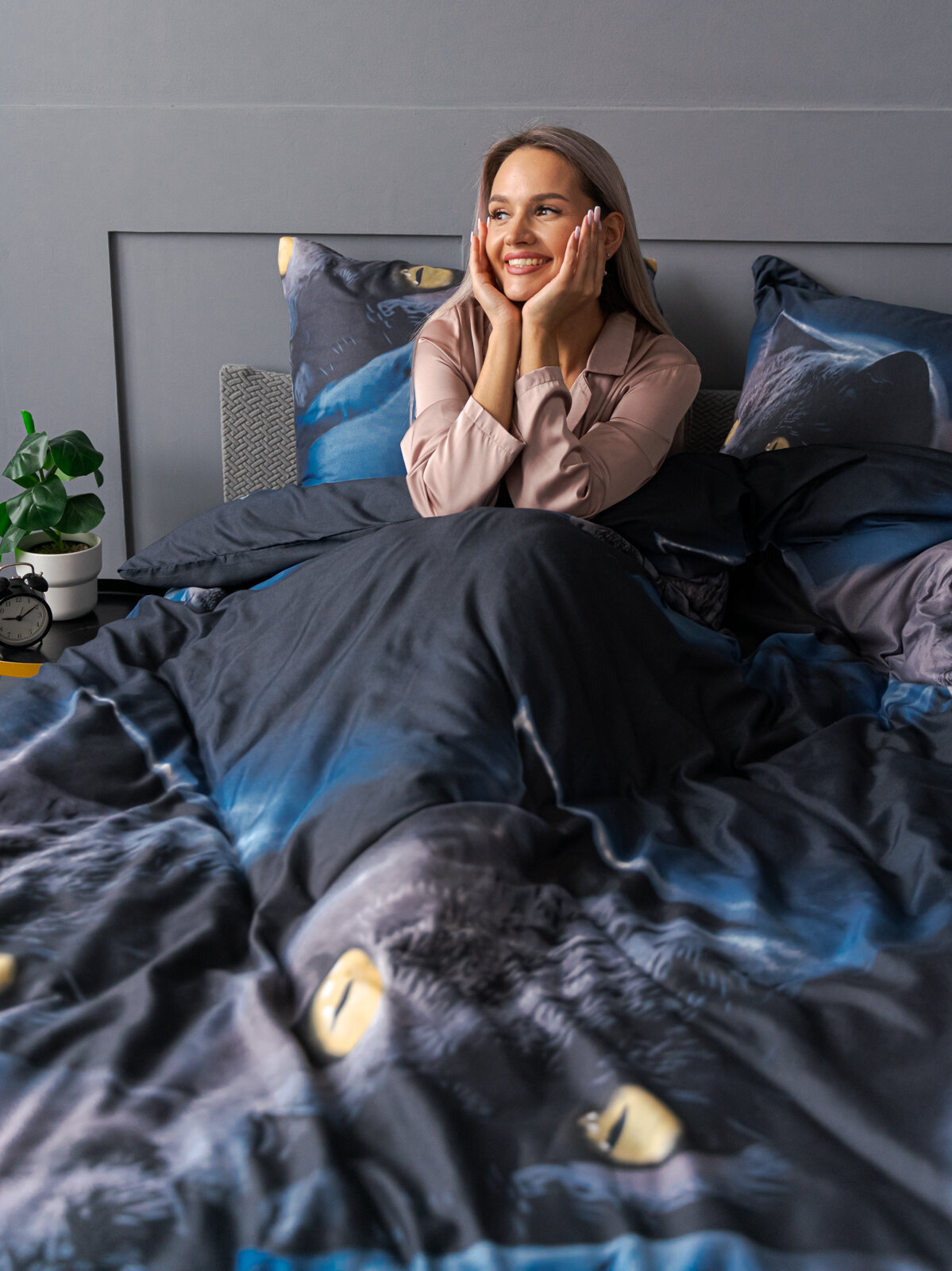 Постельное белье 2 спальное с европростыней Павлина полисатин Кот рис 6810, синий