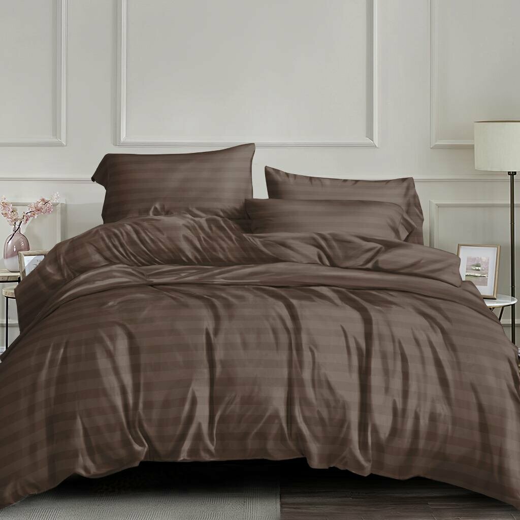 Купить Постельное белье евро двуспальное темно-бежевый BorisMency cтрайп сатин простынь 215x230, пододеяльник 200x220, наволочки 50x70-2, 70x70-2