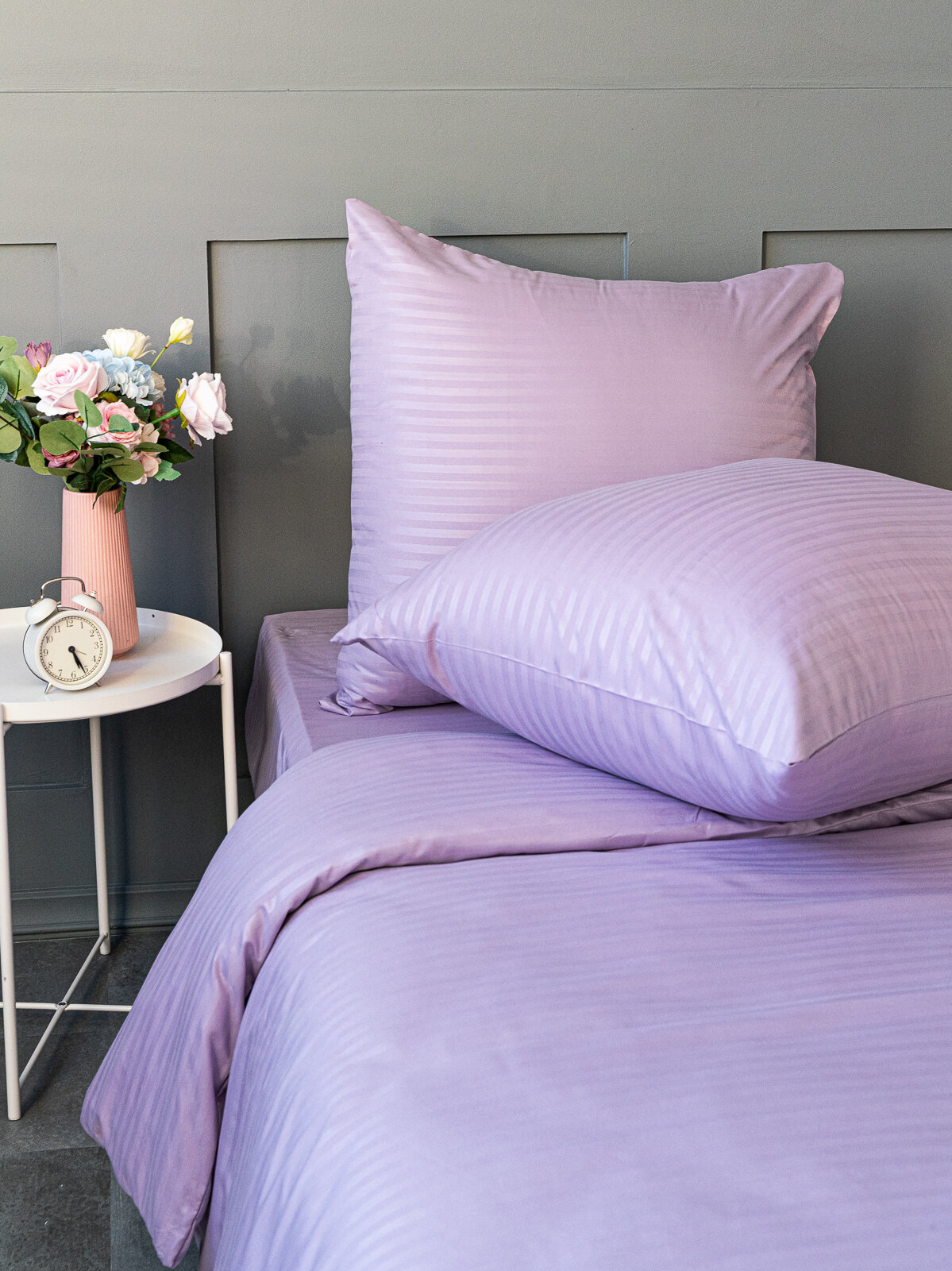 Постельное белье 1.5 спальное IDEASON Полисатин Страйп (серо-фиолетовый)