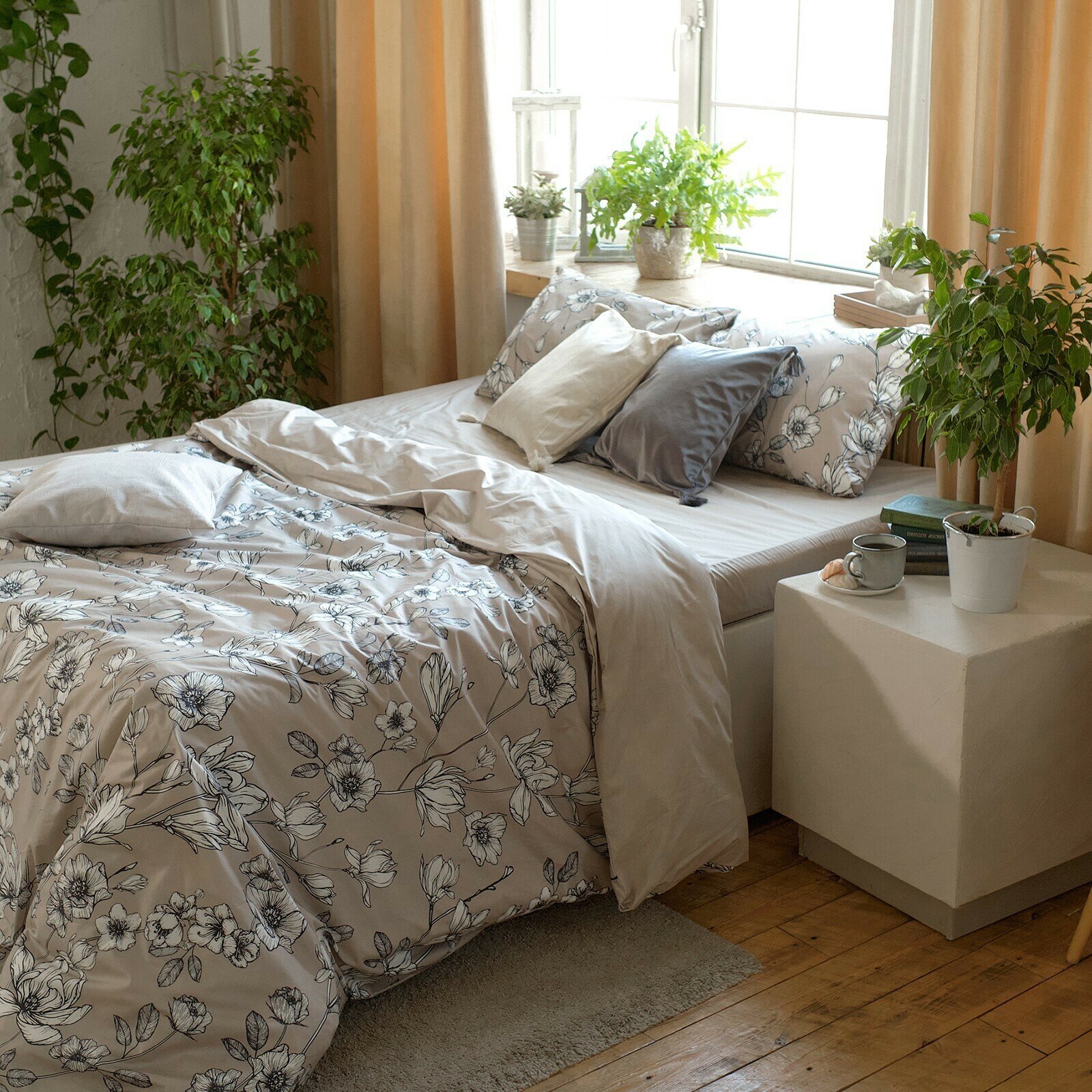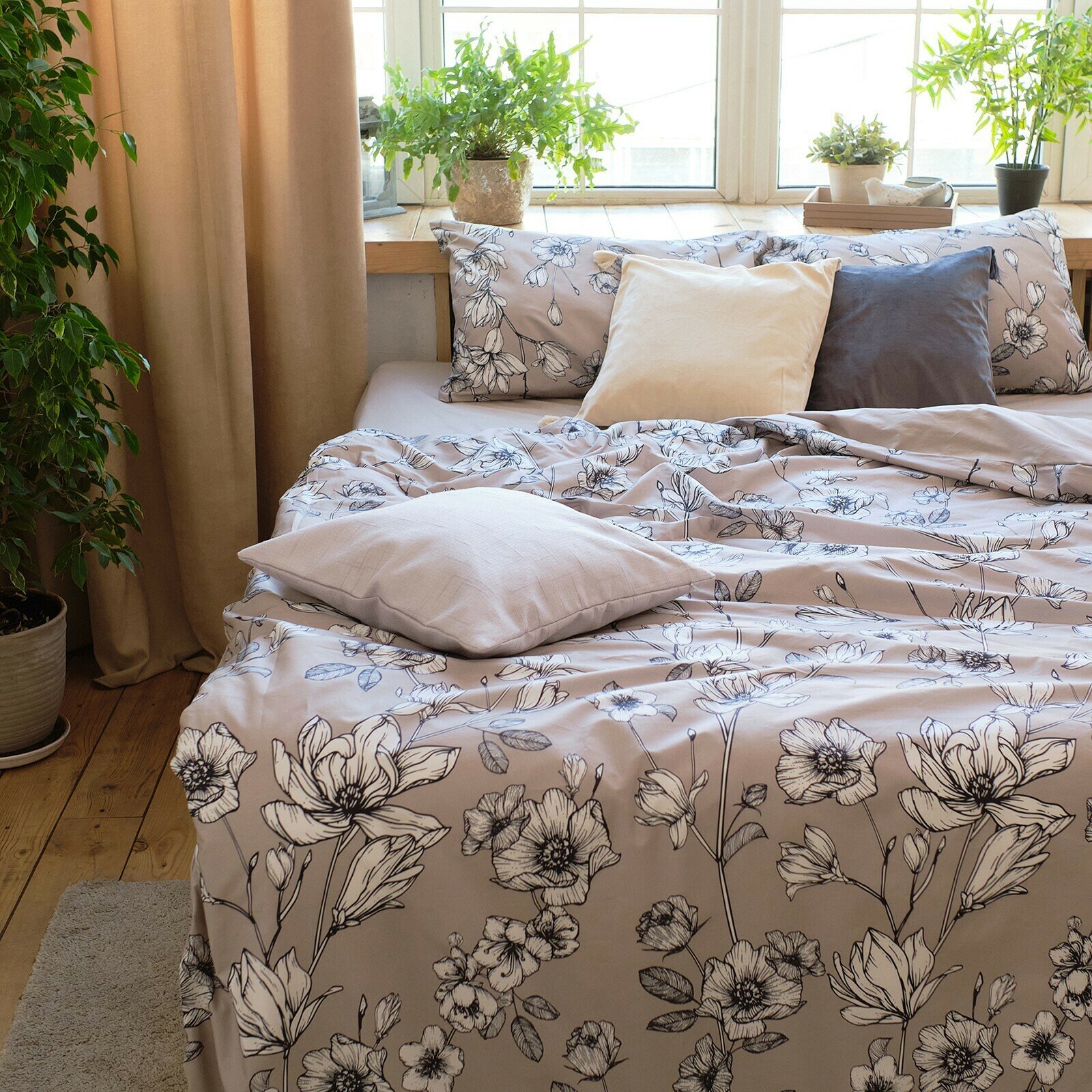 Постельное белье Этель Евро Silver garden 200х215 см, 220х240 см, 50х70 см 2 шт, 100% хлопок, поплин 125 г/м2 (9240419)