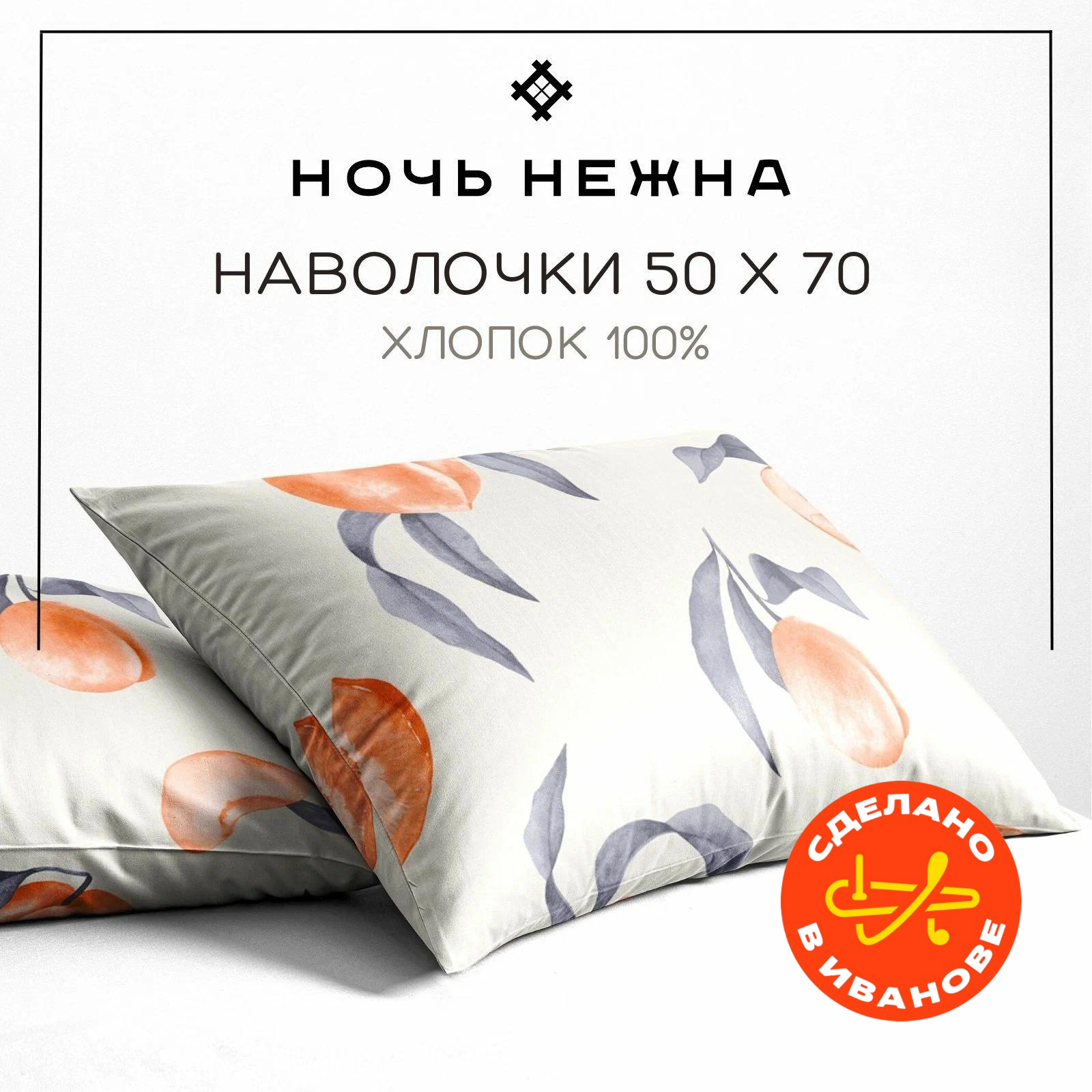 Наволочки 50х70 см, комплект из 2х шт, Ночь Нежна Сочный персик, ткань бязь, 100% хлопок