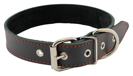 HOMEPET Ошейник для собак кожаный, простой, двойной простроченный, двухслойный, 30 мм х 41-53 см, черный