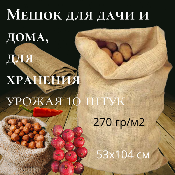 Мешок джутовый 53х104 см большой, 10 шт, 270 гр/м2 ГОСТ для картошки, овощей и фруктов интересное: