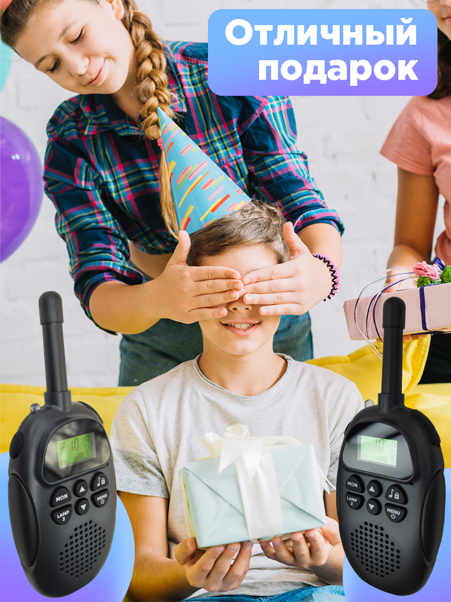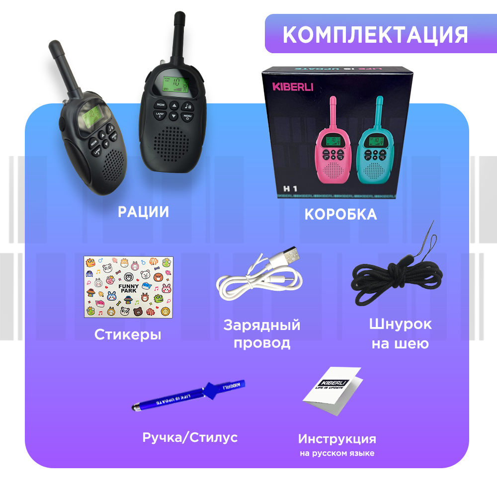 СохранитьKIBERLI H1 Комплект игровых раций для детей 10 мелодий, радионяня дальность 3 км. Детские рации, черный интересное: