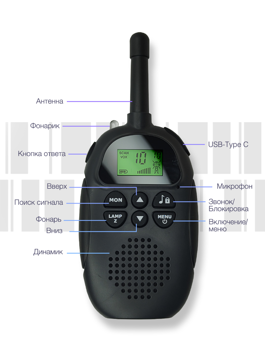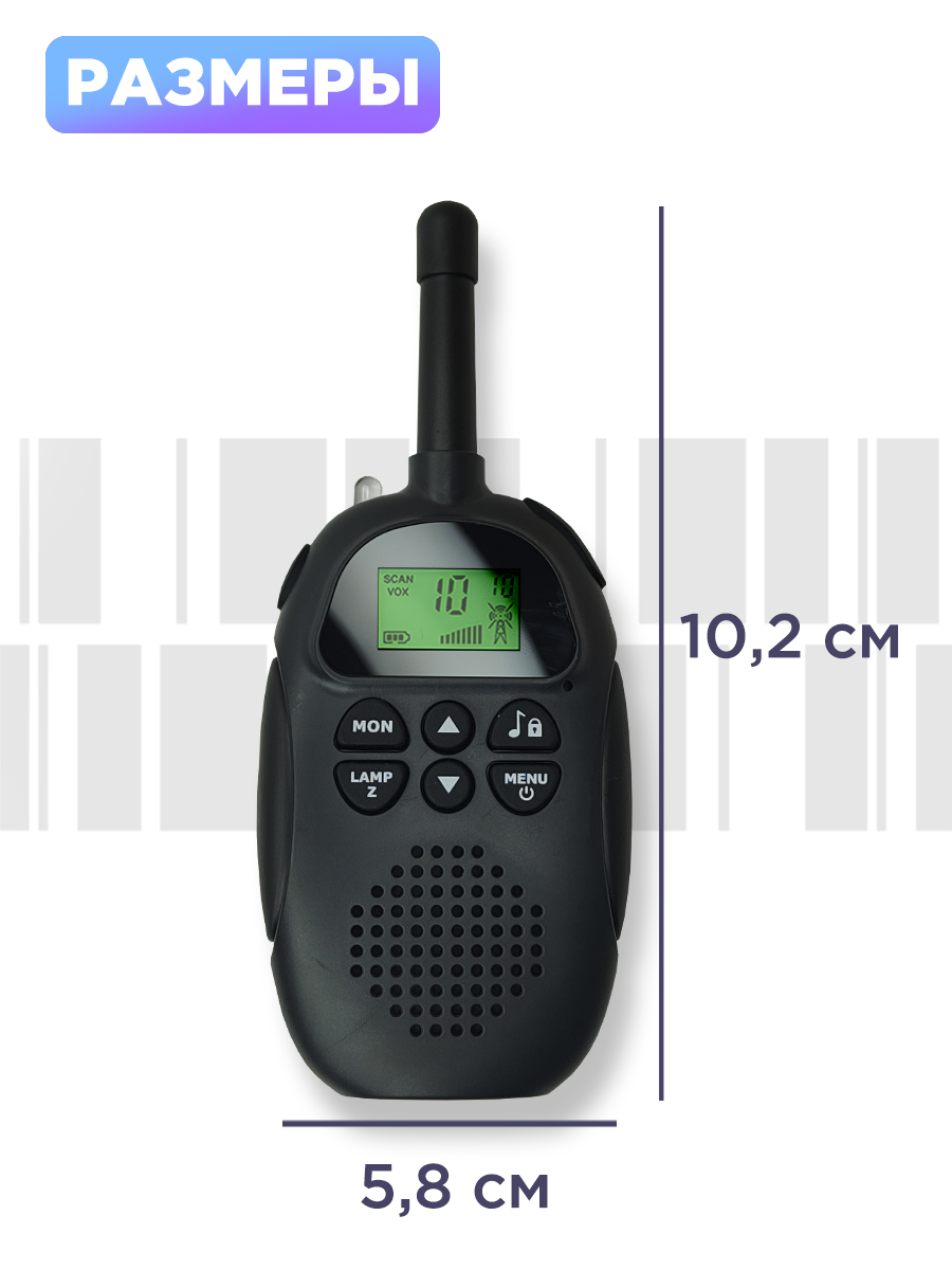 | Комплектация | Инструкция на русском языке; Коробка - 1шт; рация детская 2 шт.; ланьярды 2 шт. |
