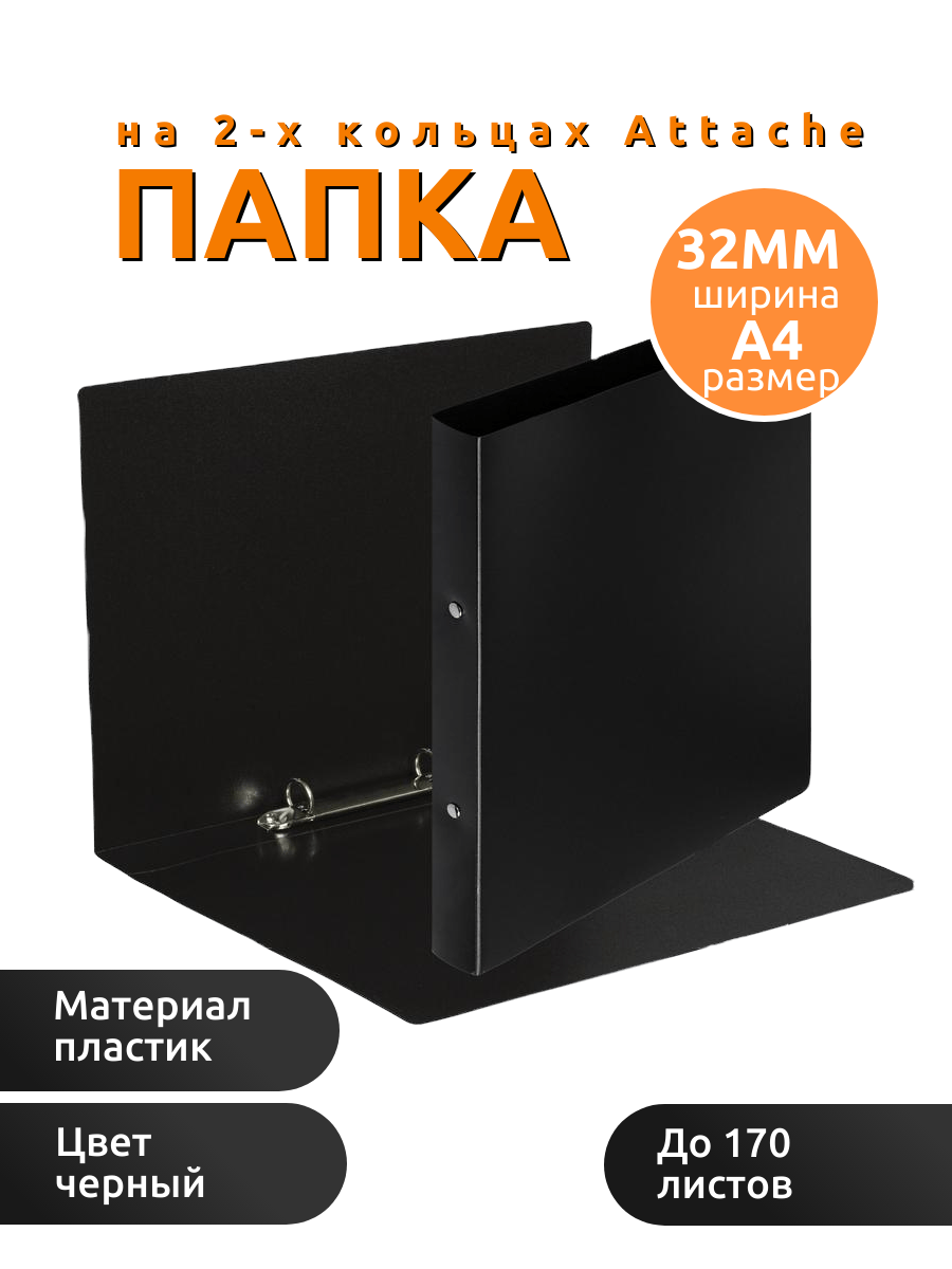 Папка на двух кольцах Attache пластиковая 32 мм черная, 639768