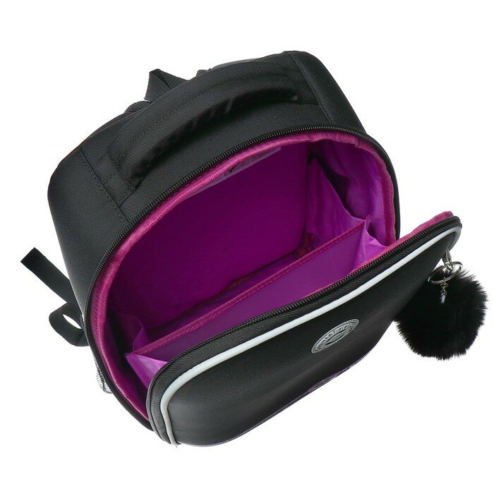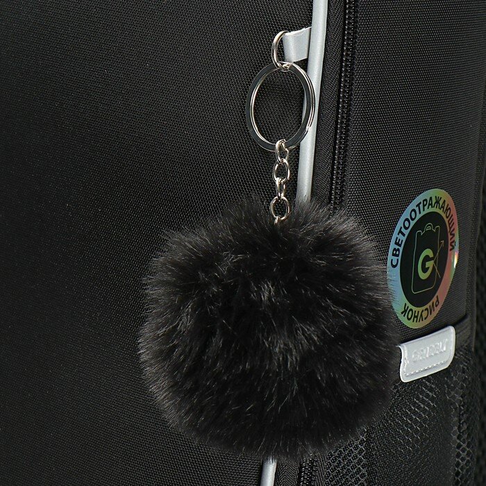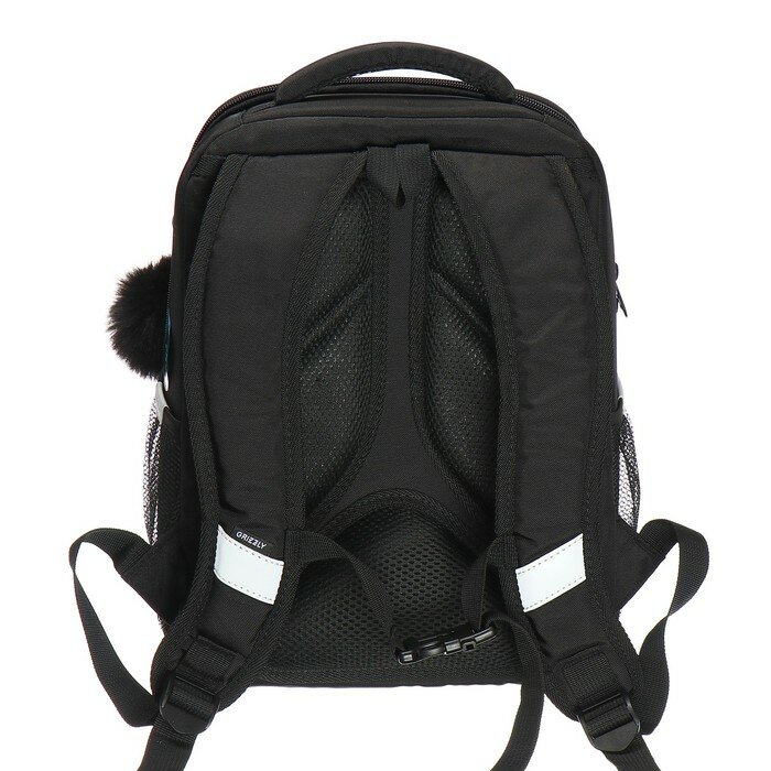 Ранец каркасный, 37 х 26 х 16 см, Grizzly, + брелок, чёрный