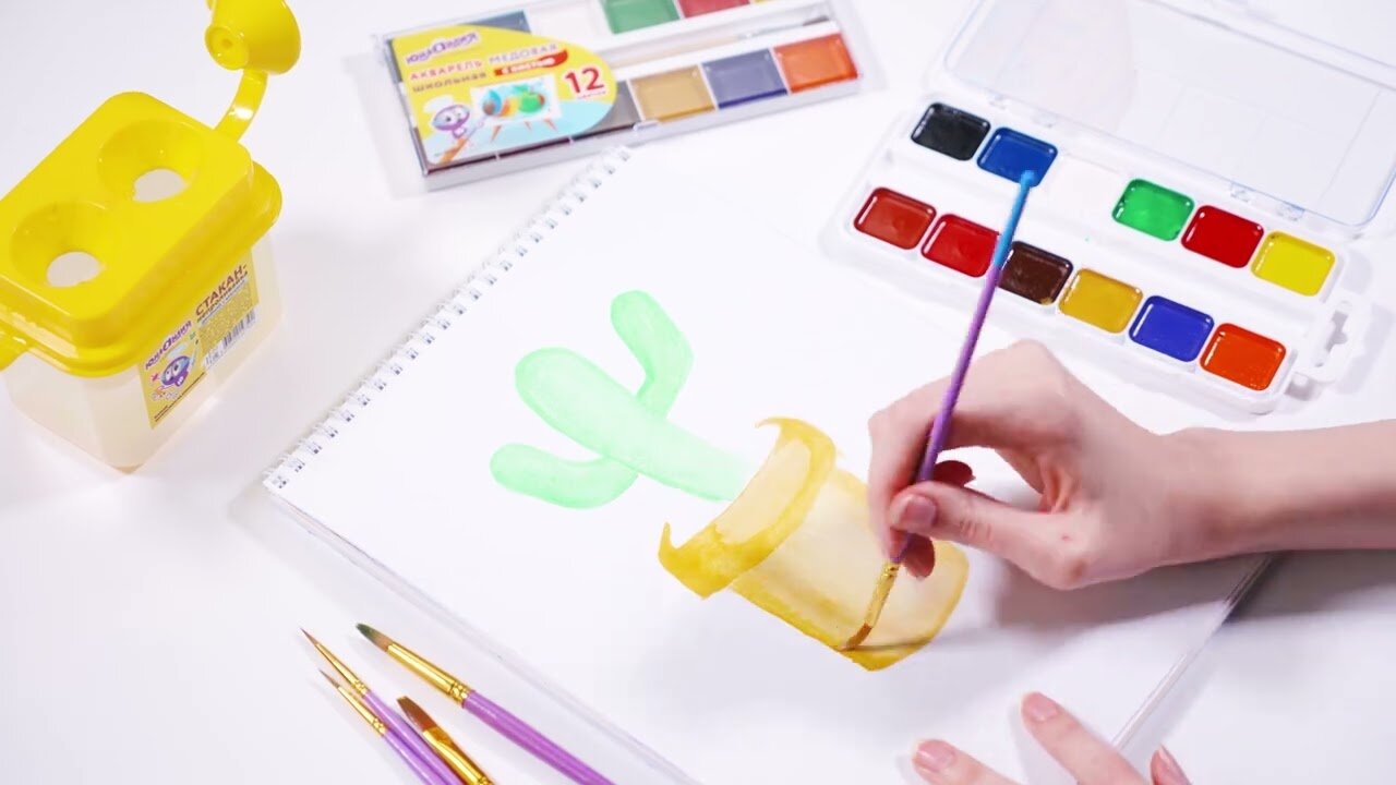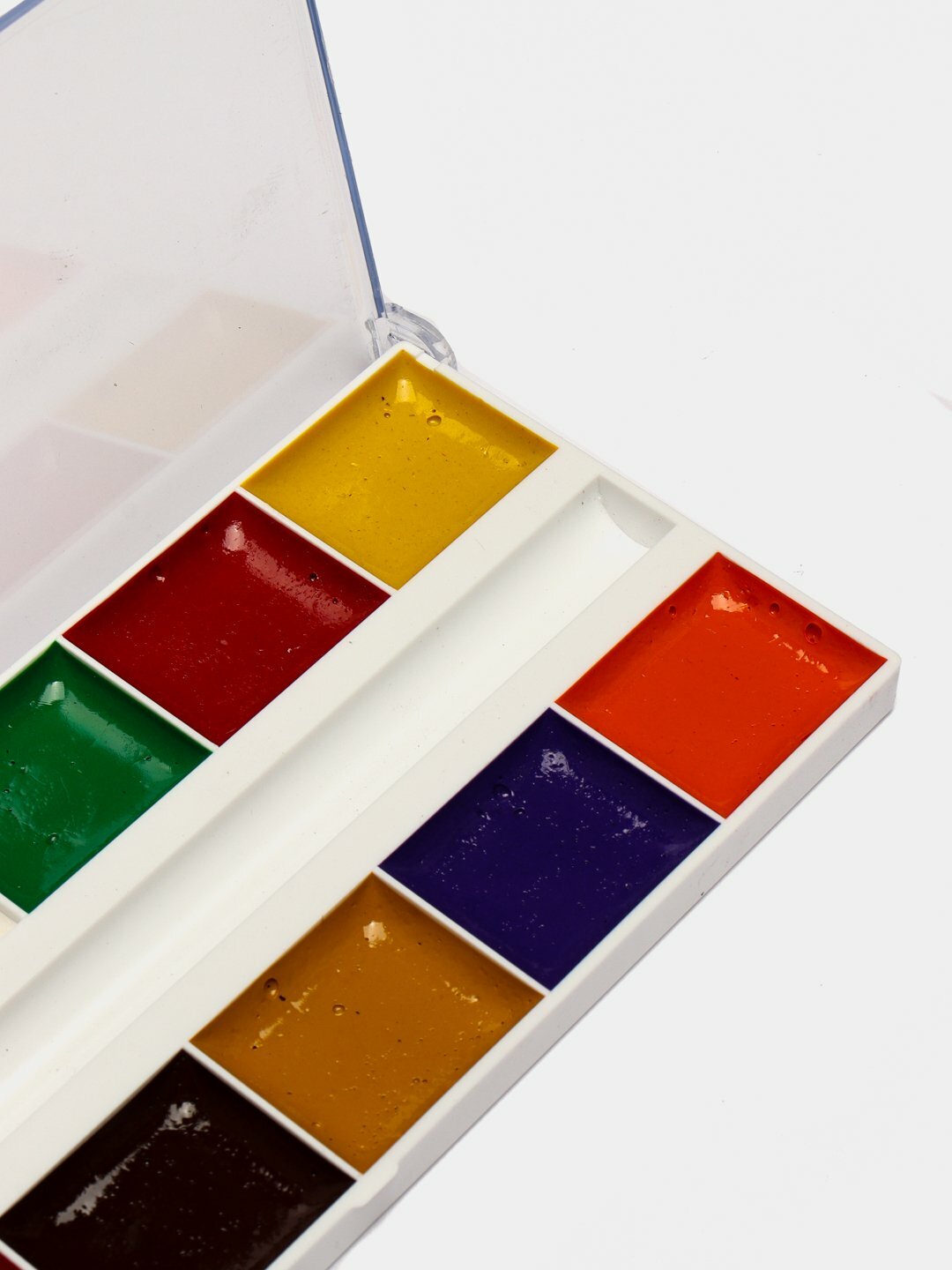 Краски акварельные юнландия "школьные", 12 цв.,медовые,увеличенный объем кювет,кисть,пластик,191527 интересное: