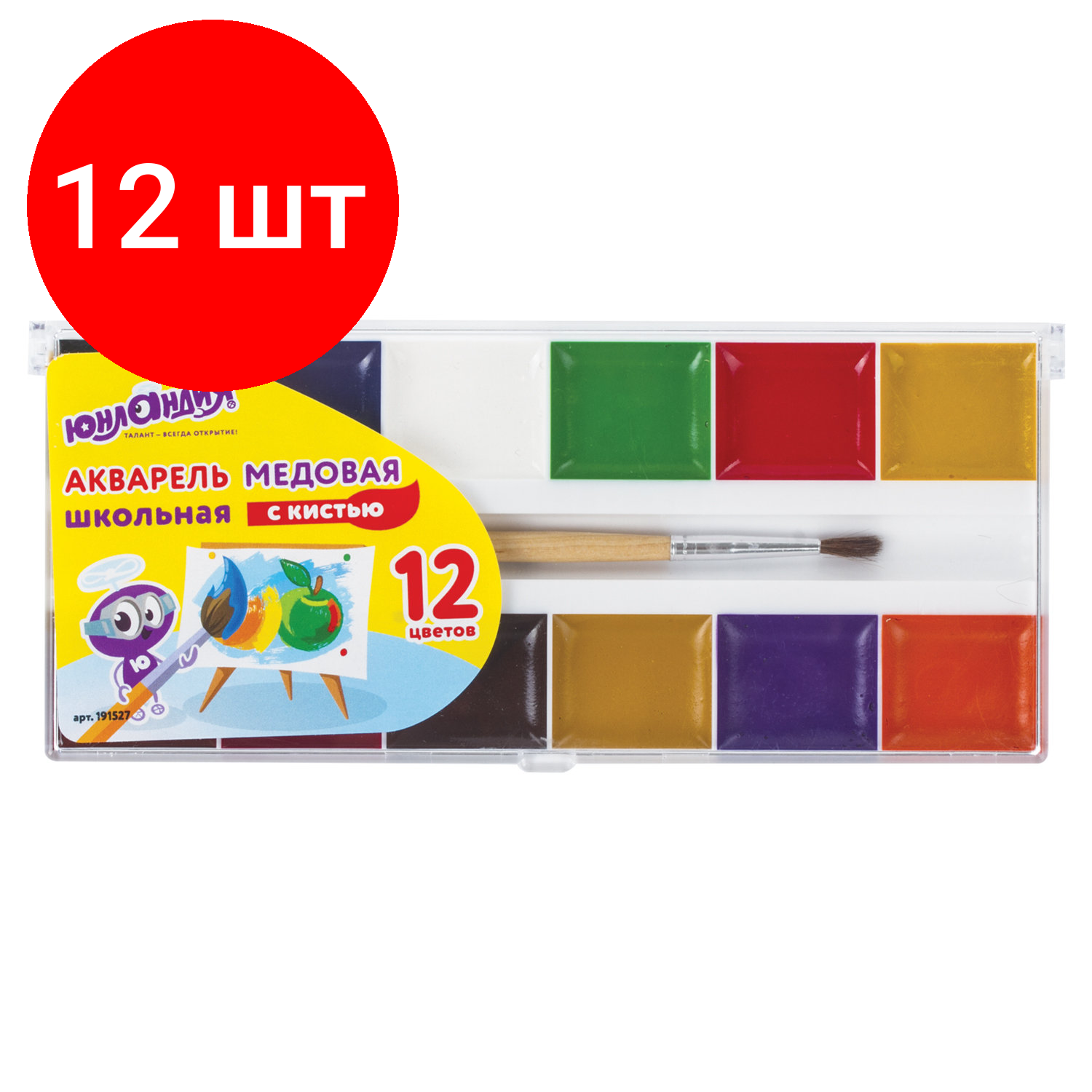 Краски акварельные медовые 12 цветов Юнландия "Школьные", с кистью, пластиковая коробка, 16 уп.