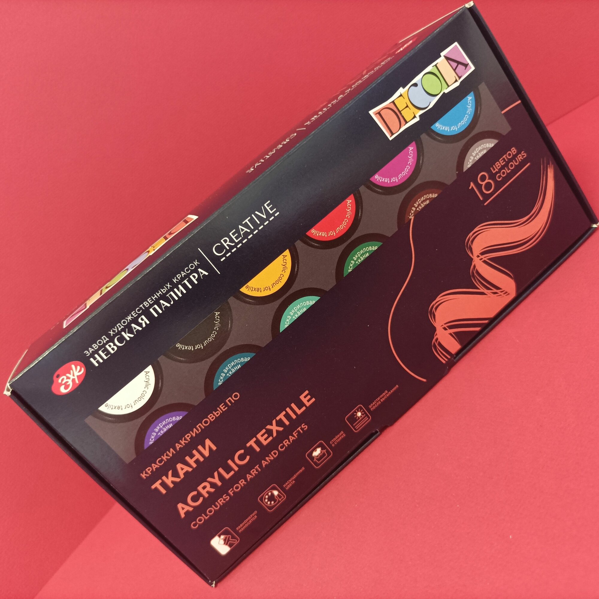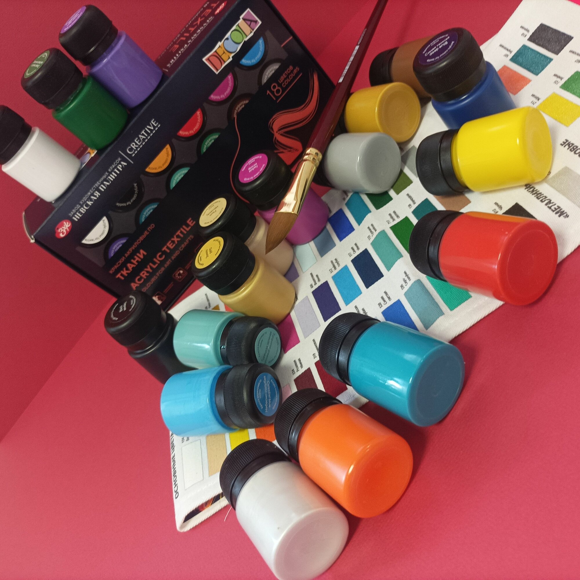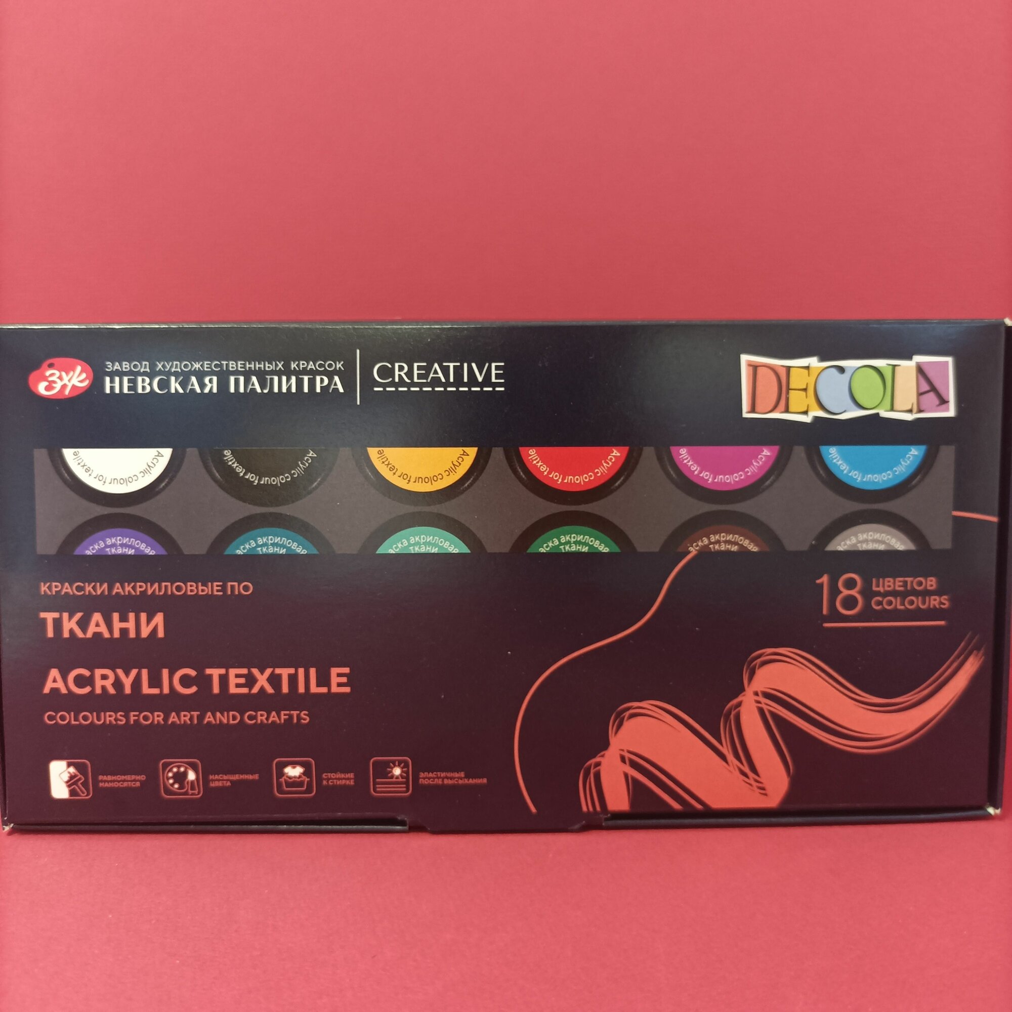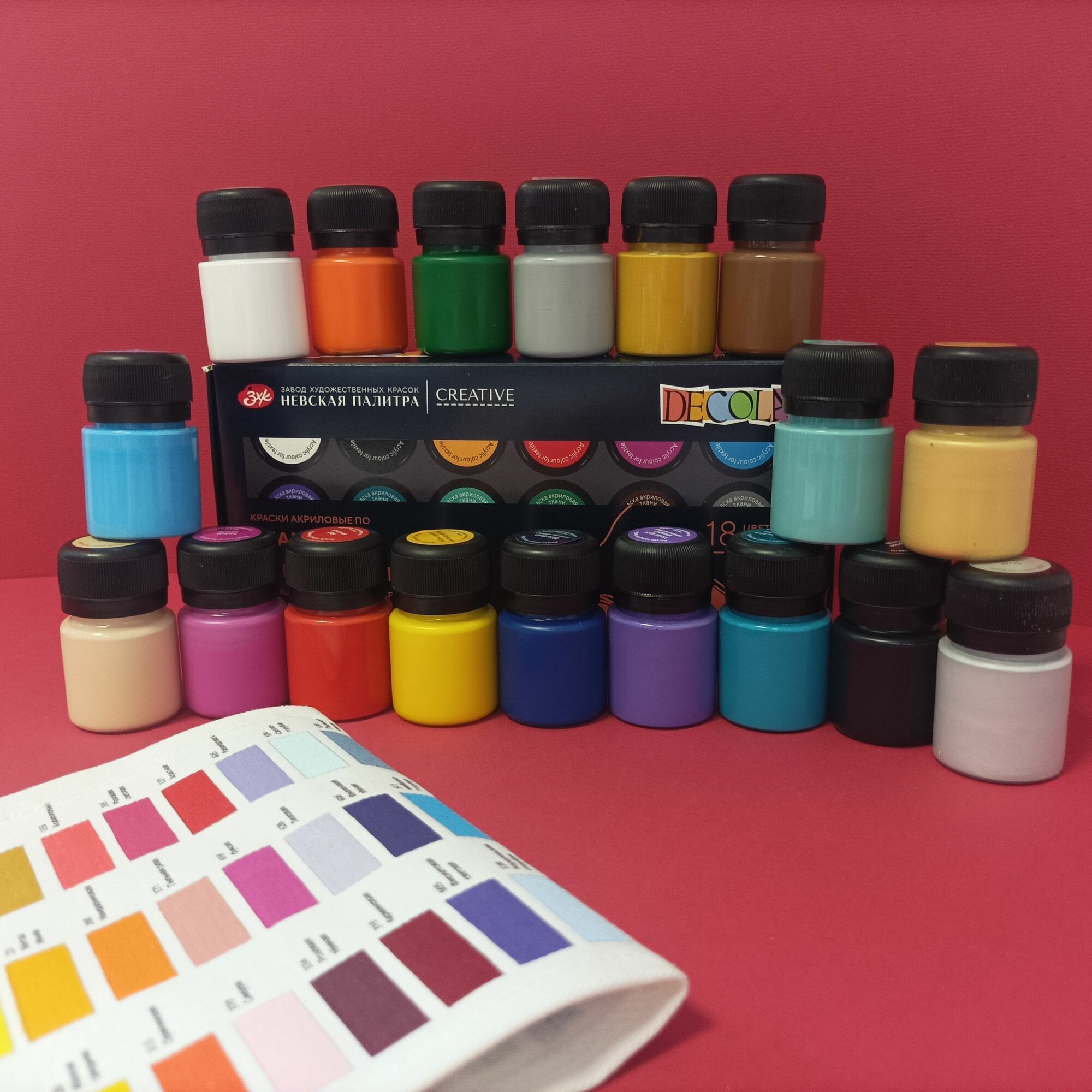 Краски акриловые для рисования по ткани Невская палитра DECOLA, 18 цветов по 20 мл