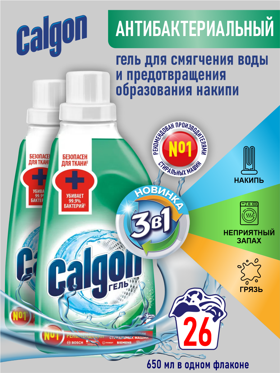 CALGON Гель Антибактериальный для cмягчения воды и предотвращения накипи 650 мл. х 2 шт.