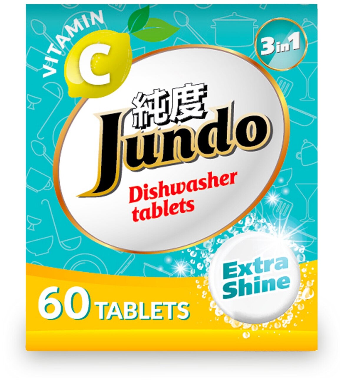 Таблетки для посудомоечной машины Jundo Vitamin C, с витамином С и активным кислородом, 3 в 1, 60 штук