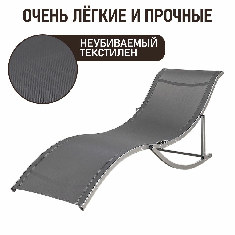 Шезлонг-кресло для дачи анатомический из стали и текстилена Рипозо, серый