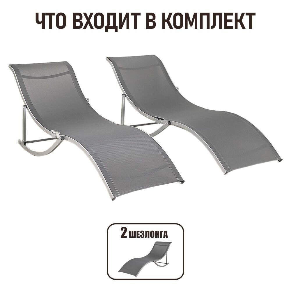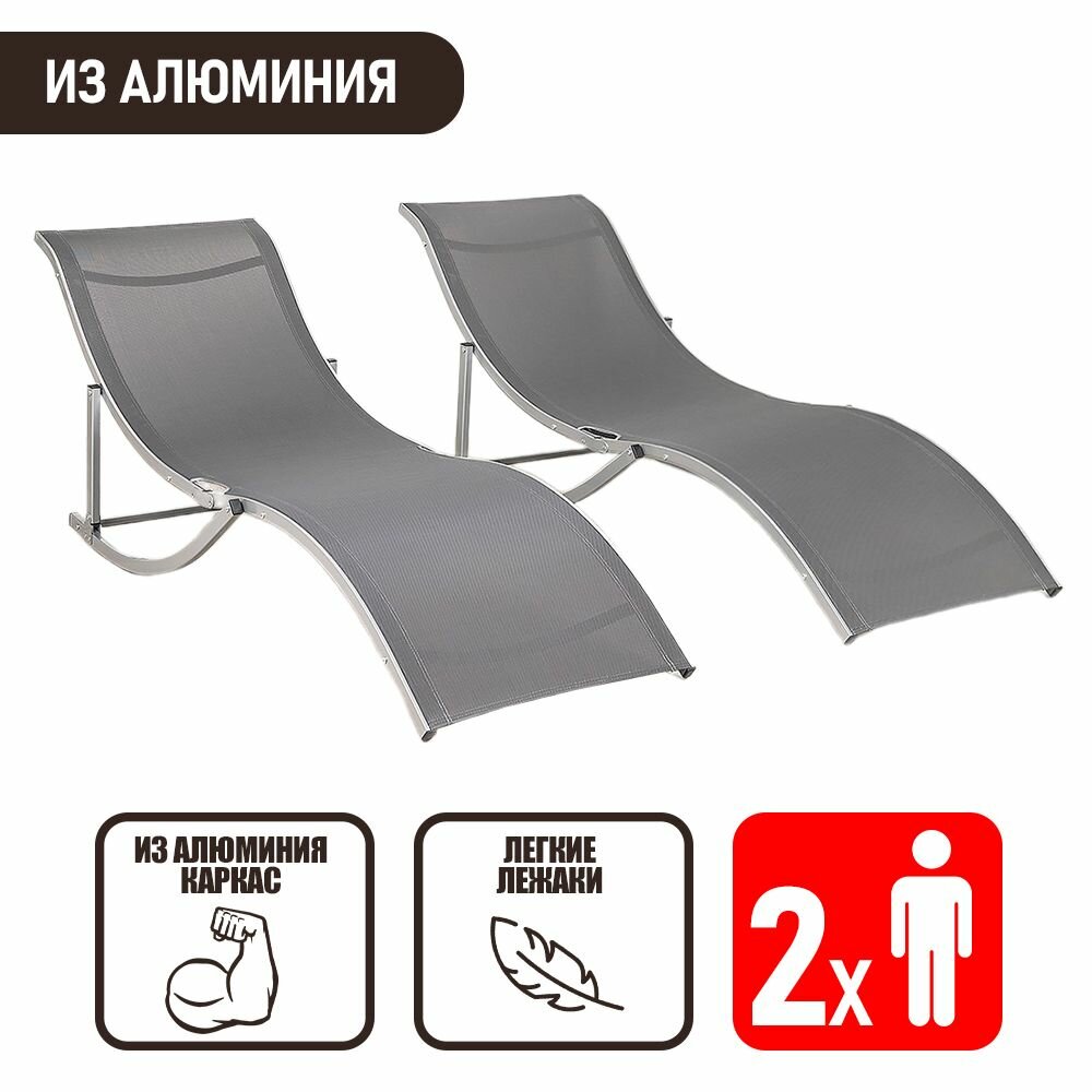 Комплект кресел-шезлонгов складных из алюминия Фолд для дачи, серый