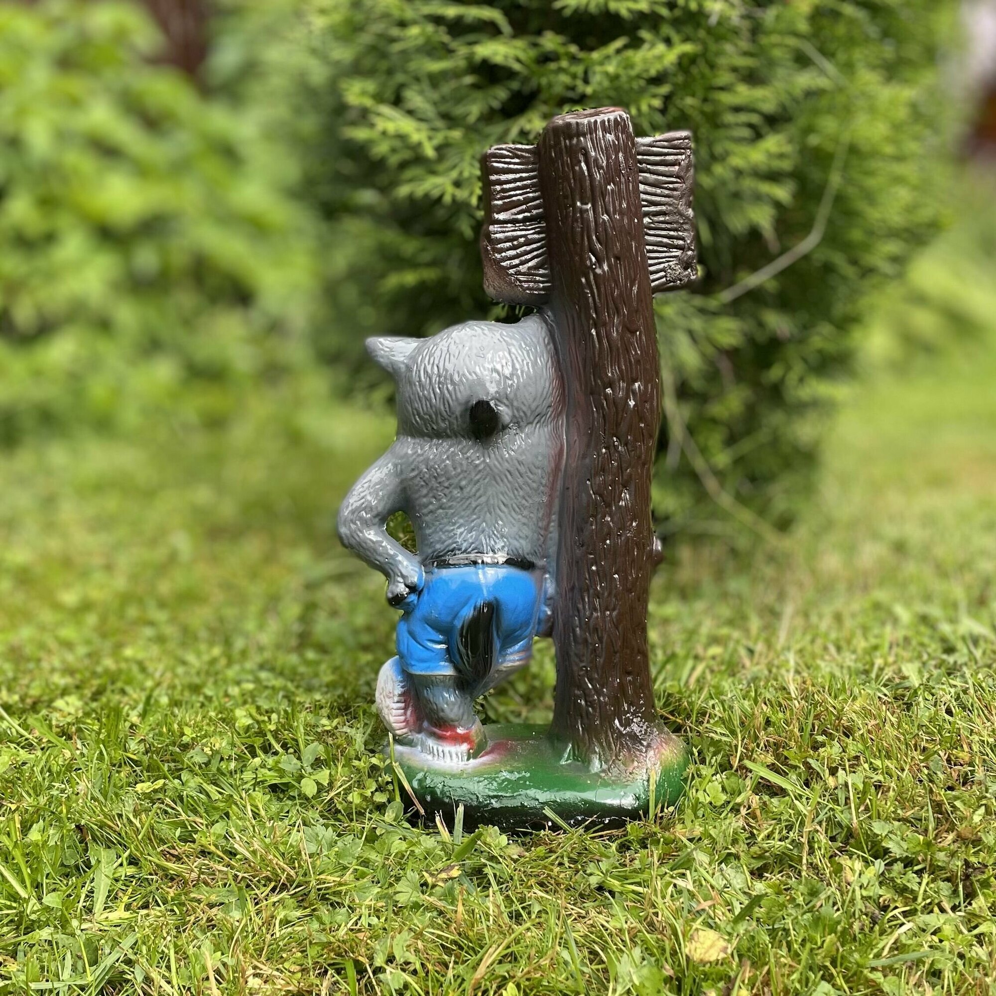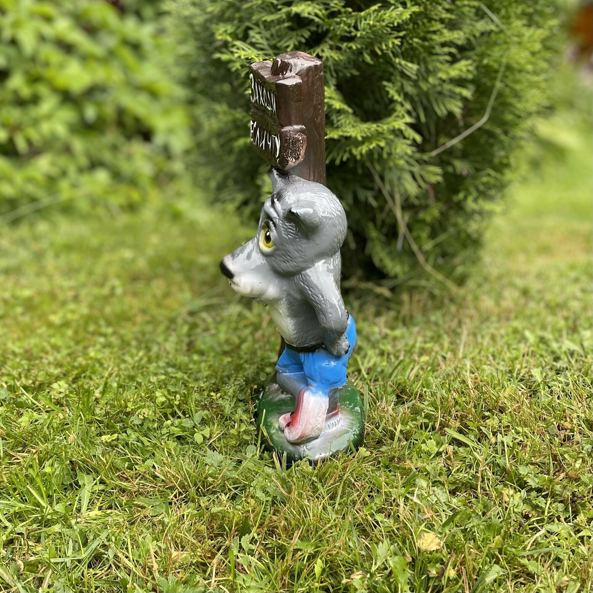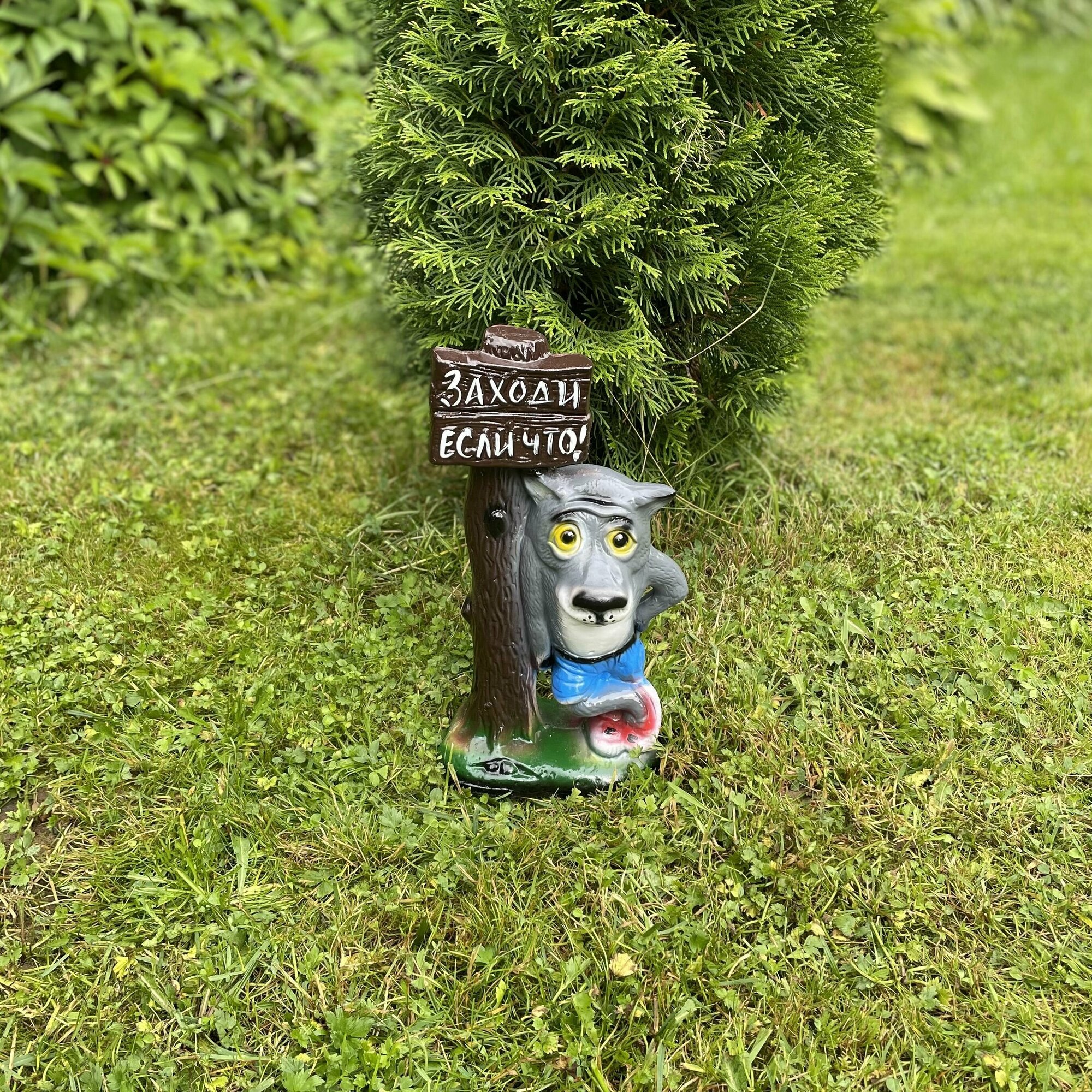 "Волк с табличкой 33см" Садовая фигура / Подарок интересное: