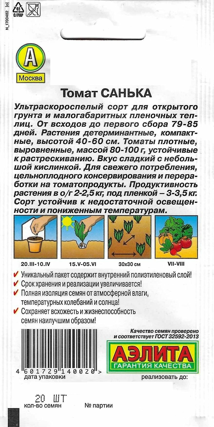 Томат Санька 20шт Дет Ранн (Аэлита) интересное: