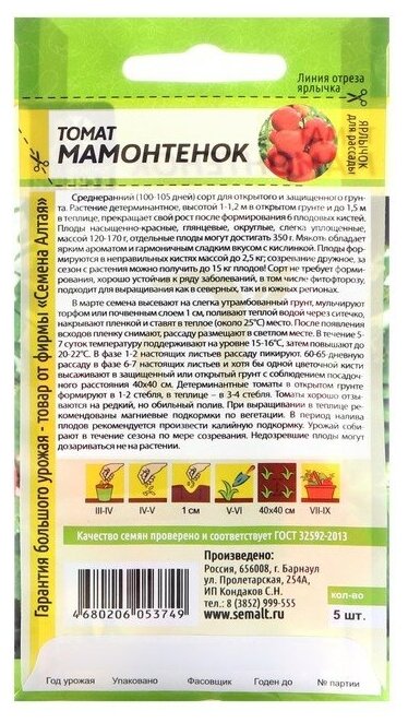 Купить Семена Томат "Мамонтенок", Сем. Алт, ц/п, 5 шт