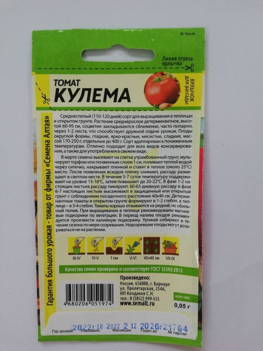 Ниже Вы можете прочитать отзывы на Семена Томат "Кулема", Сем. Алт., ц/п, 0,05 г, ознакомится с подробными характеристиками, посмотреть интересные обзоры и фотографии на Семена Томат "Кулема", Сем. Алт., ц/п, 0,05 г.