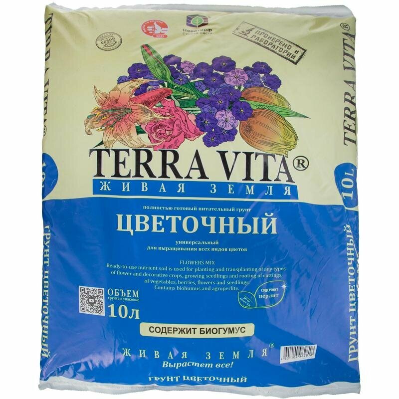 Грунт Живая Земля Terra vita цветочный 10л