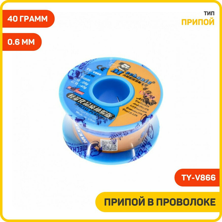 Припой проволочный Mechanic TY-V866, диаметр 0.6 мм, 40 гр