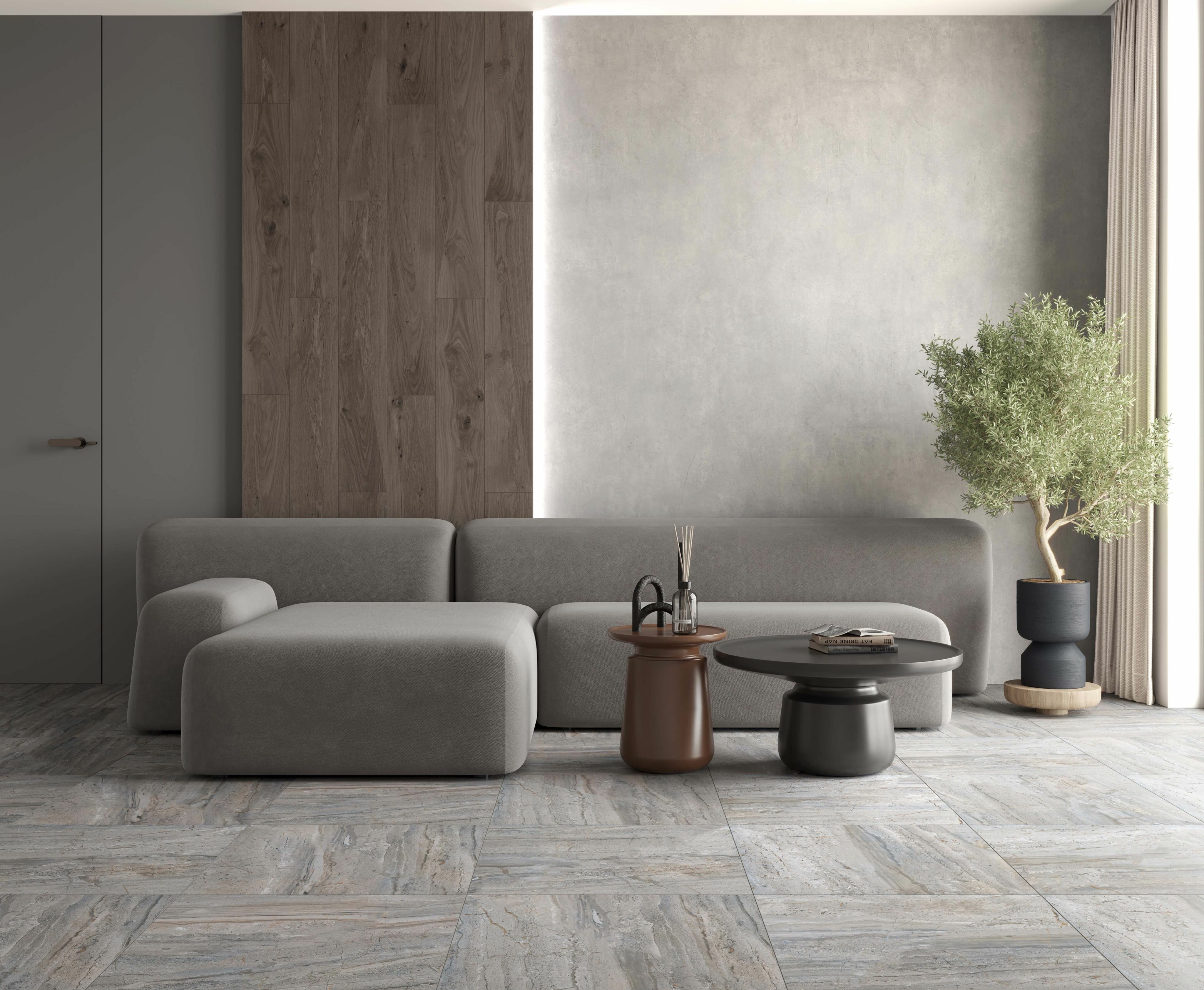 Pluto Grigio Керамогранит серый 60х119,5 матовый, В упаковке 2,151 м2. (3 плитки 120х60 см.)