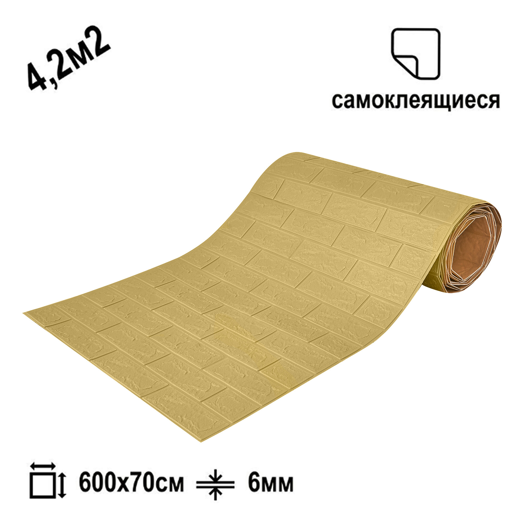 Купить Самоклеящаяся ПВХ 3D-панель для стен в рулоне LAKO DECOR, 70x600см, Классический кирпич Желтый песок