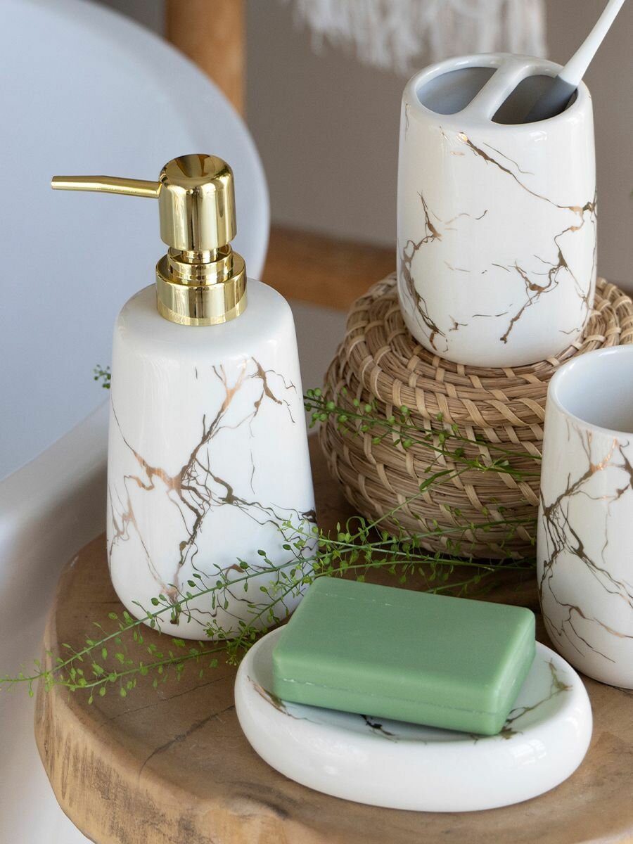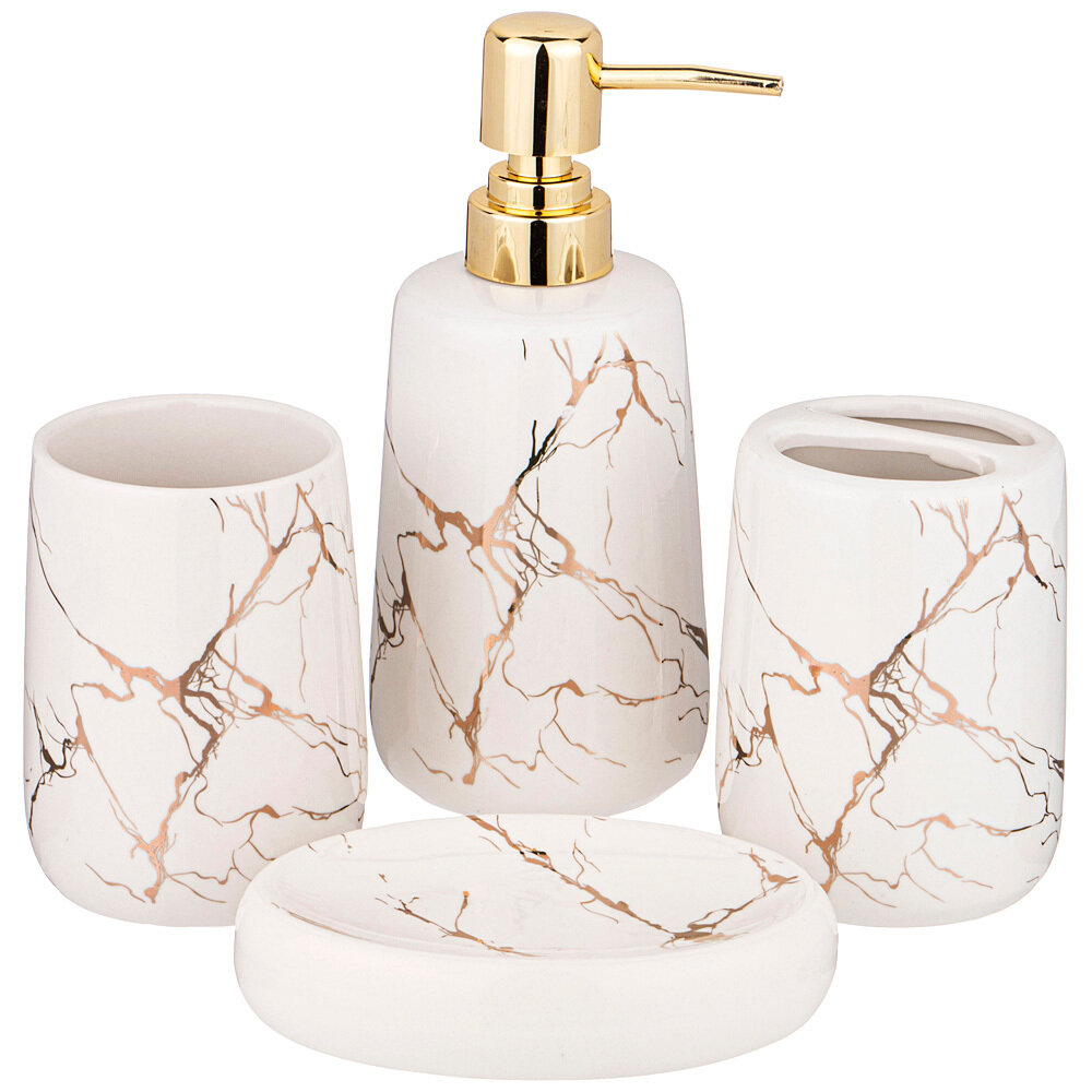 Набор для ванной Lefard, 4 предмета : дозатор для мыла, стакан для зубных щеток, стакан для зубной пасты, мыльница