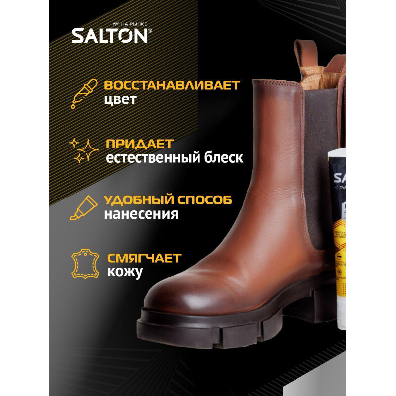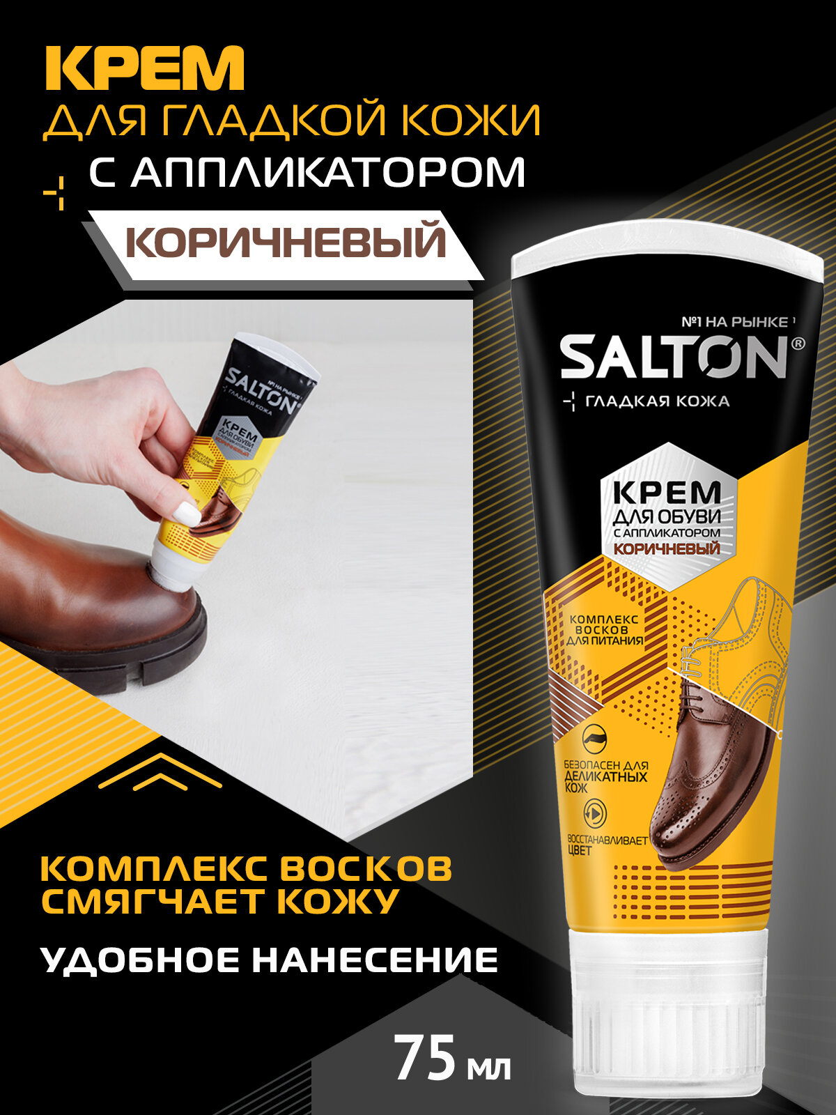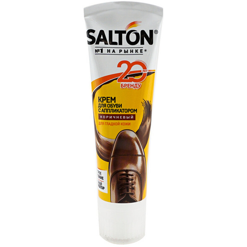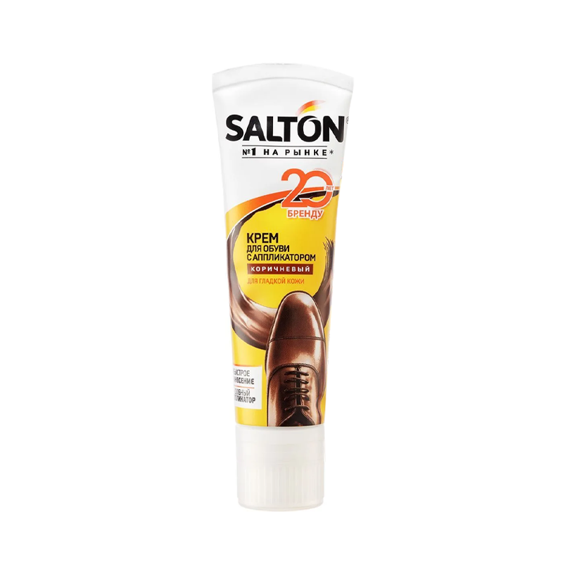 Коричневый крем для обуви в тубе с аппликатором Salton, для гладкой кожи, 75 мл