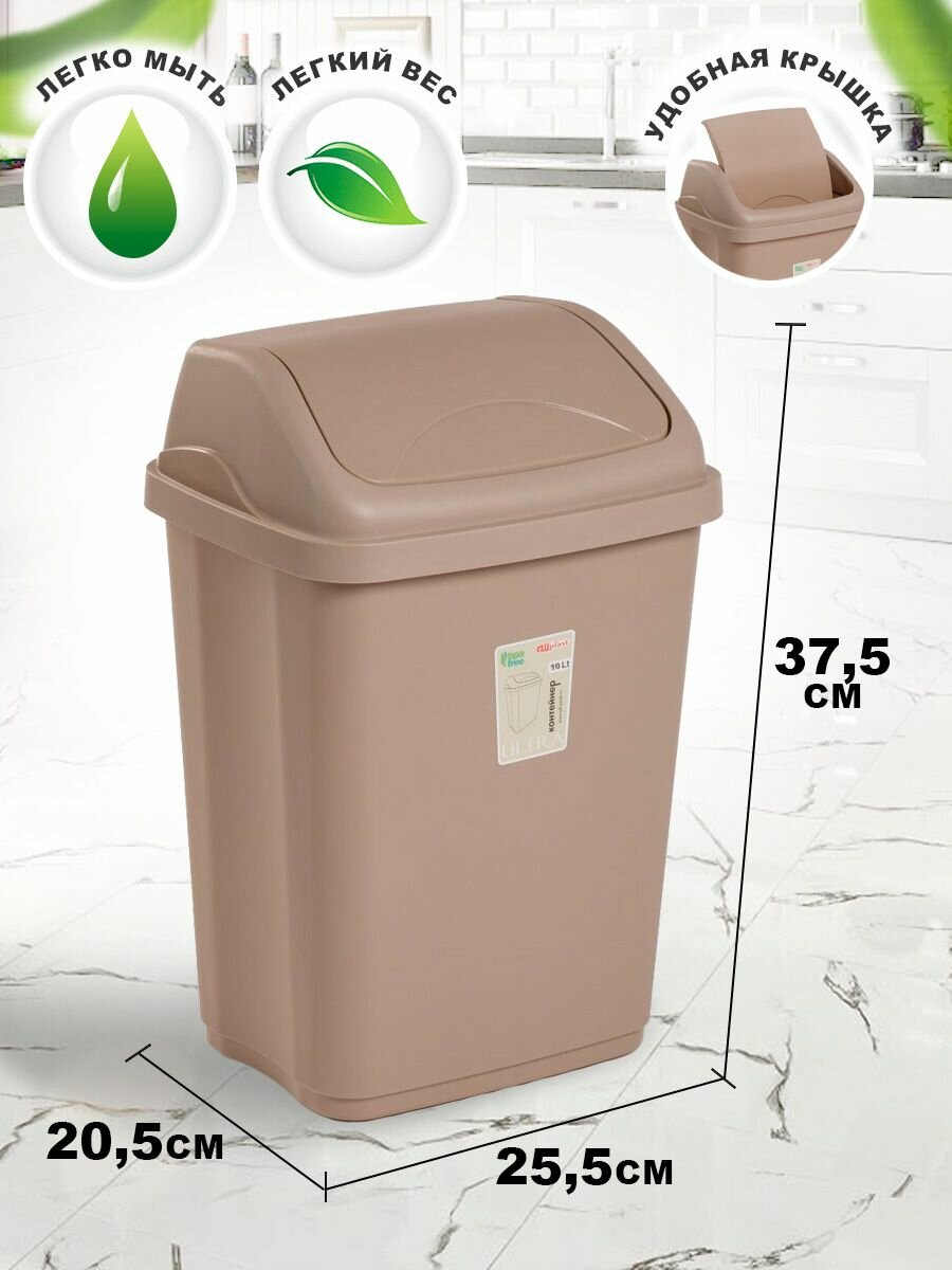 Контейнер для мусора ULTRA мусорное ведро на 5 литров с плавающей крышкой Цвет-серо-коричневый.
