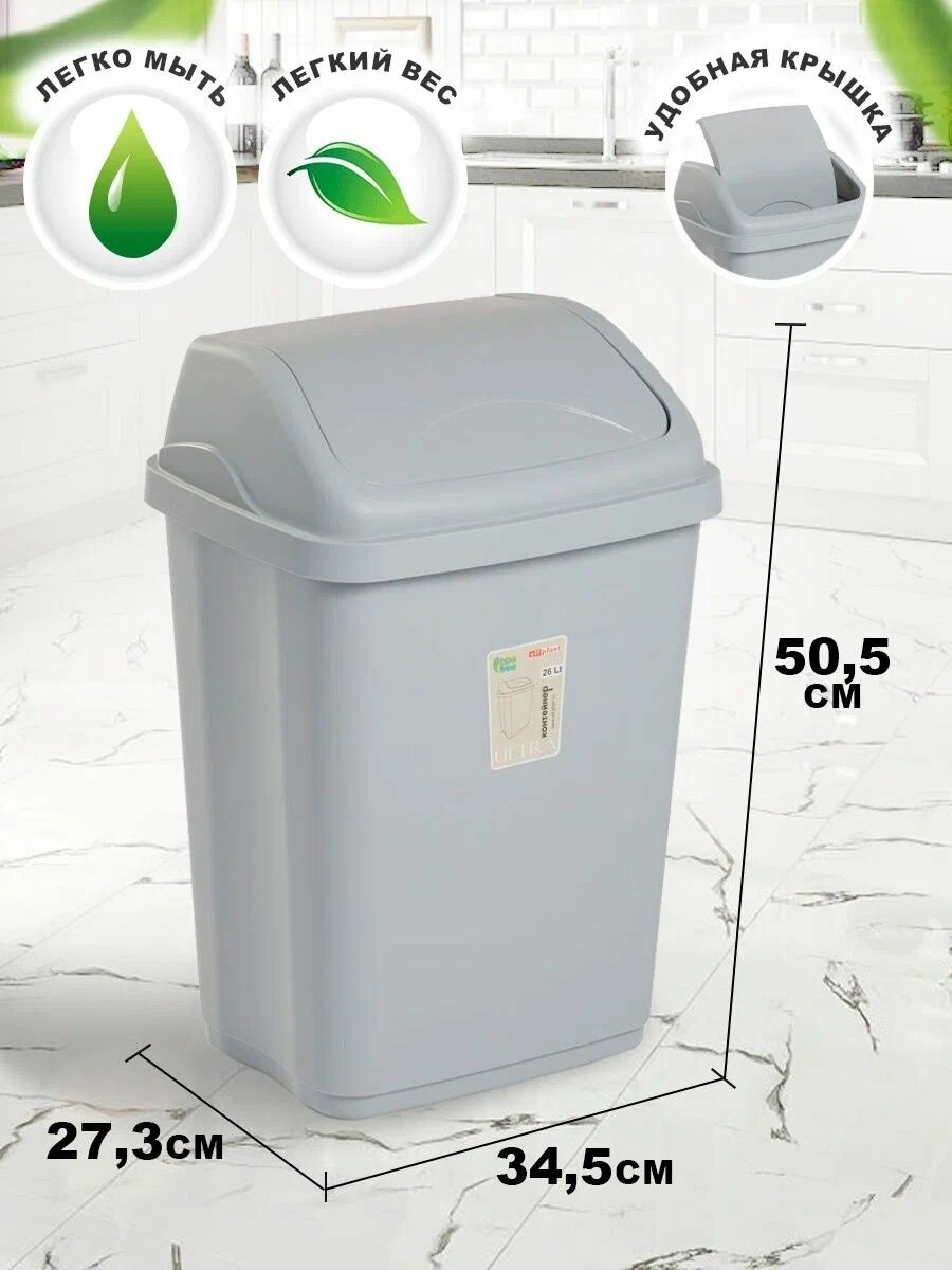 Контейнер для мусора Ultra Мусорное ведро 26 л.с плавающей крышкой цвет -серый. .