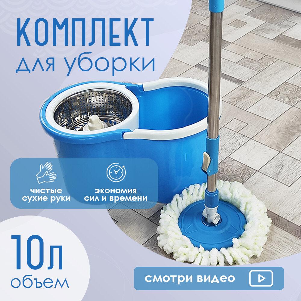 Набор ведро пластиковое + швабра, с отжимом. Синий интересное: