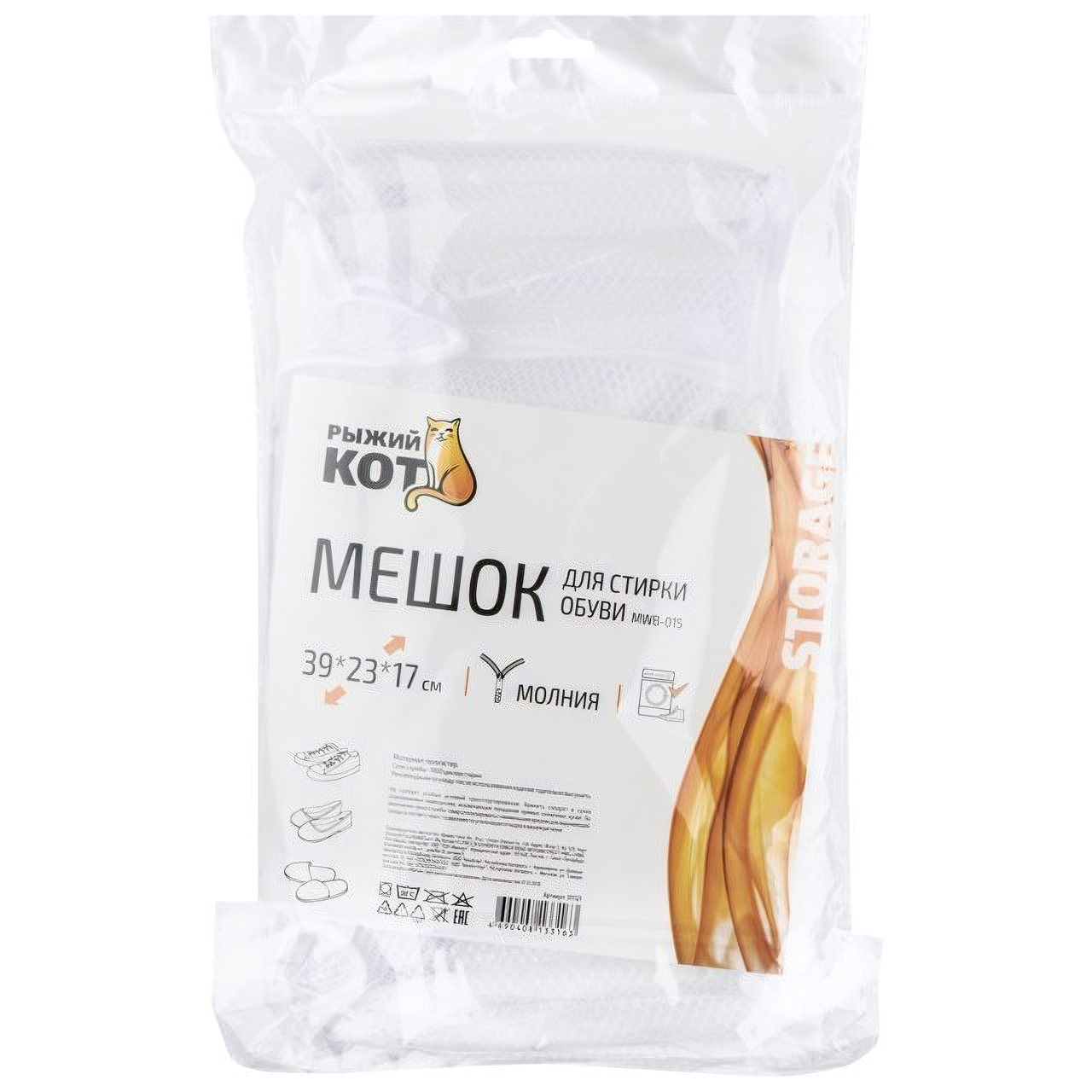 | Дополнительная информация | Мешок для стирки обуви РЫЖИЙ КОТ, 39х23х17 см |