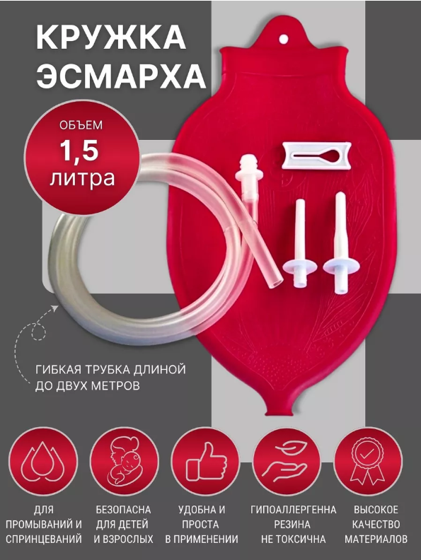 Ниже Вы можете прочитать отзывы на Кружка Эсмарха №2, 1. 5 л, ознакомится с подробными характеристиками, посмотреть интересные обзоры и фотографии на Кружка Эсмарха №2, 1. 5 л.