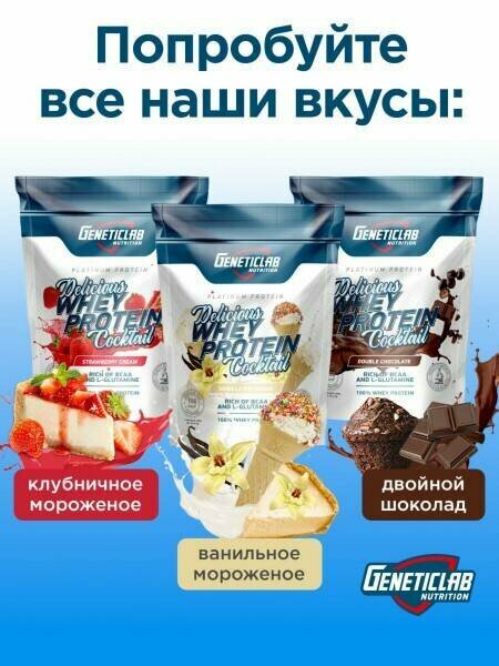 Протеин Geneticlab Delicious Whey 900гр со вкусом клубники