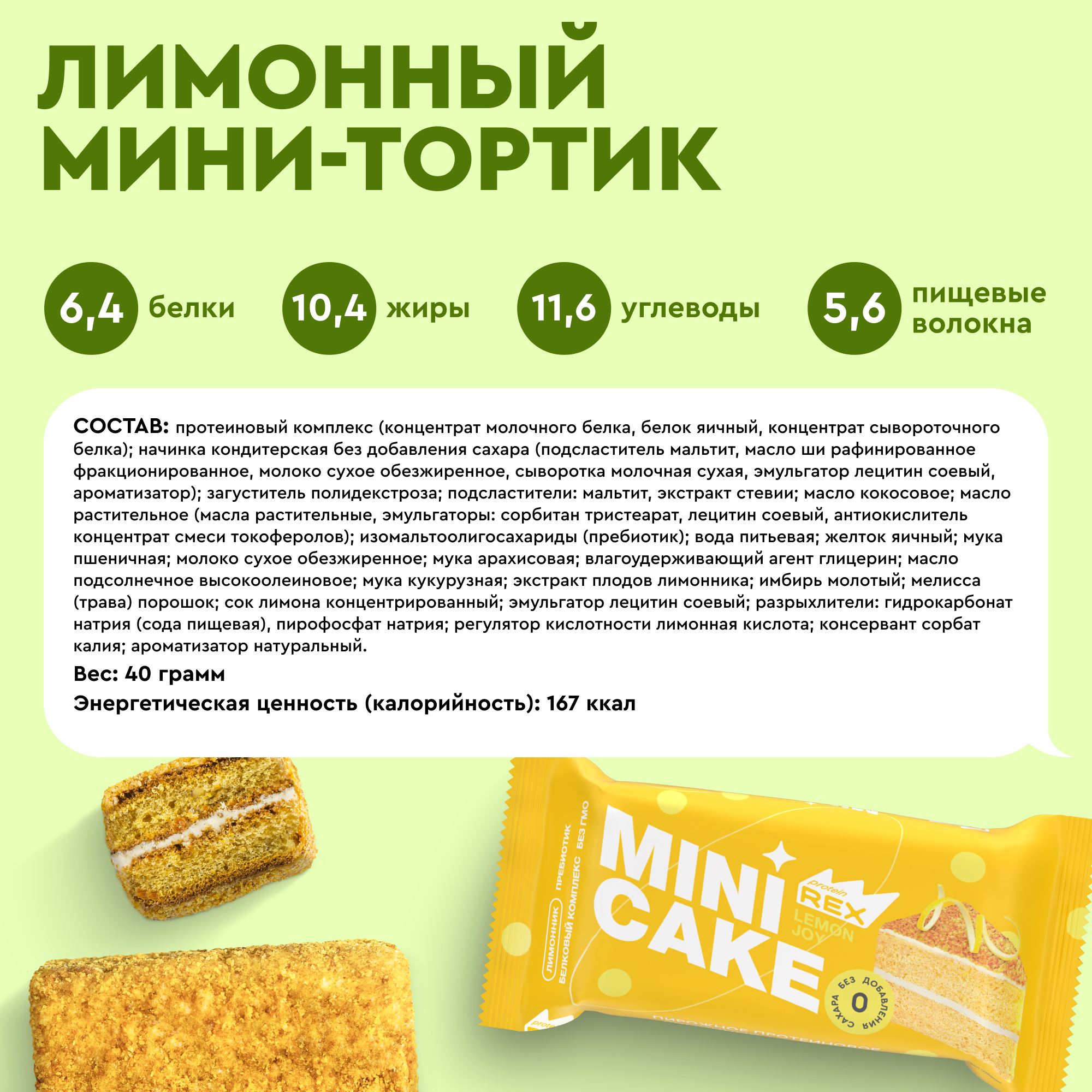 Протеиновое пирожное ProteinRex Тортик Лимонный 8 шт десерт без сахара, низкокалорийное печенье, батончики, ПП сладости 167 ккал